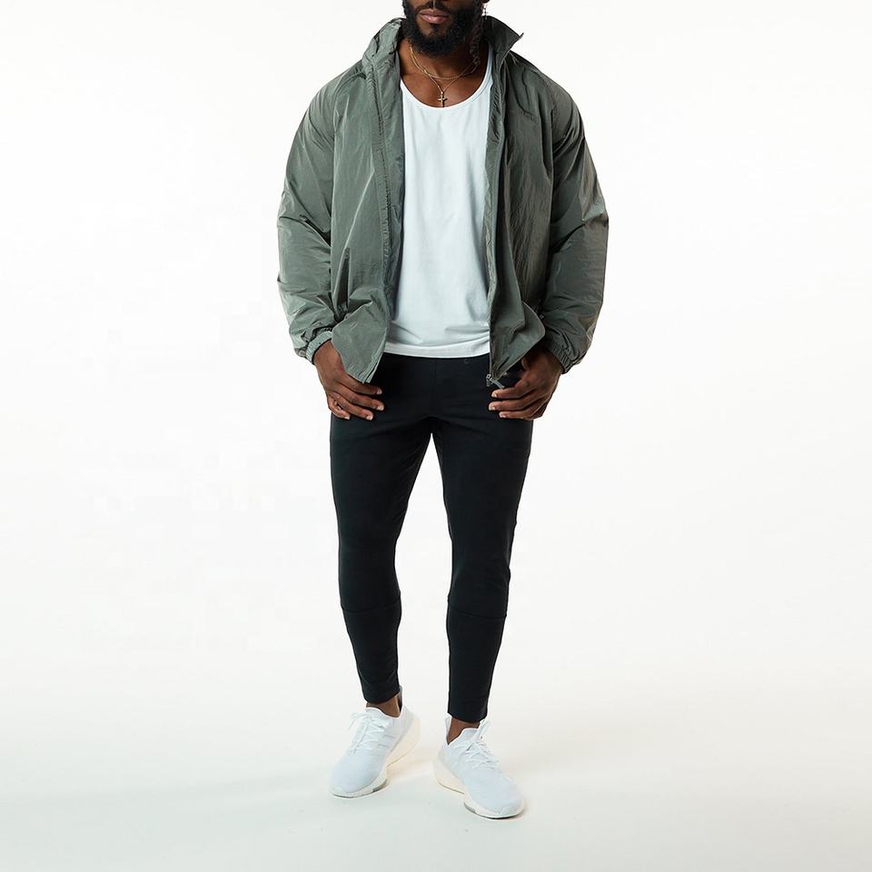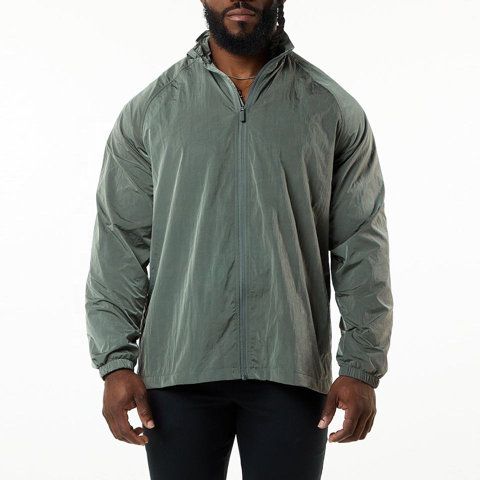 Wholesale Unique Breathable Waterproof Zip up Gym Workout Jackets Fashion Quick Dry 100% Nylon Windbreaker Sports Jacket for Men