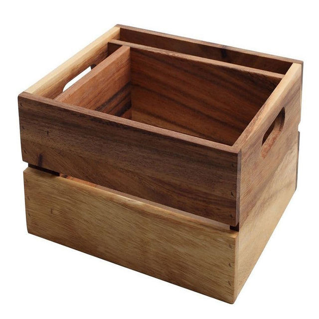 Wholesale Unique Shape Acacia Wood Kitchenware Storage Caddy with Metal Handle for Wall Hanging Manufacturer and Exporters