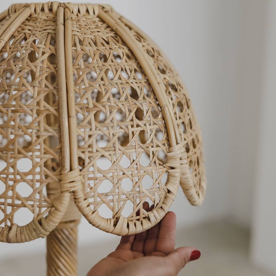 Wholesale Unique Style Rattan Table Lamps with Flower Petal Shape Lovely Natural Bed Sidetable Lamp