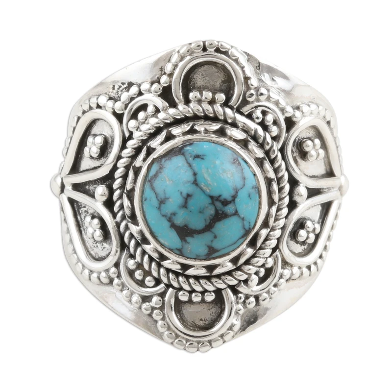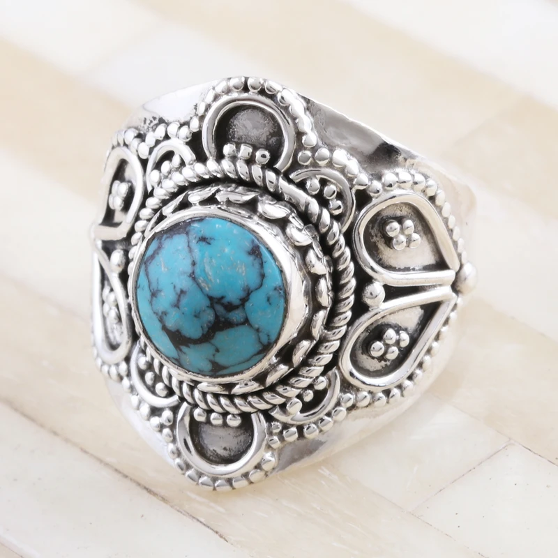 Wholesale Unique Unisex Aura Blue Turquoise Cocktail Ring Trendy Bohemian Handmade Gemstone Jewelry Christian Inspired
