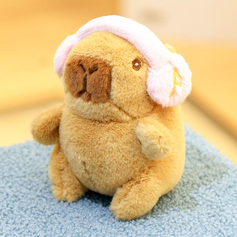 Wholesale Unisex 12cm Cute Capybara Wearing Headphone Pendant PP Cotton Stuffed Animal Keychain for Stress Relief Birthday Gift