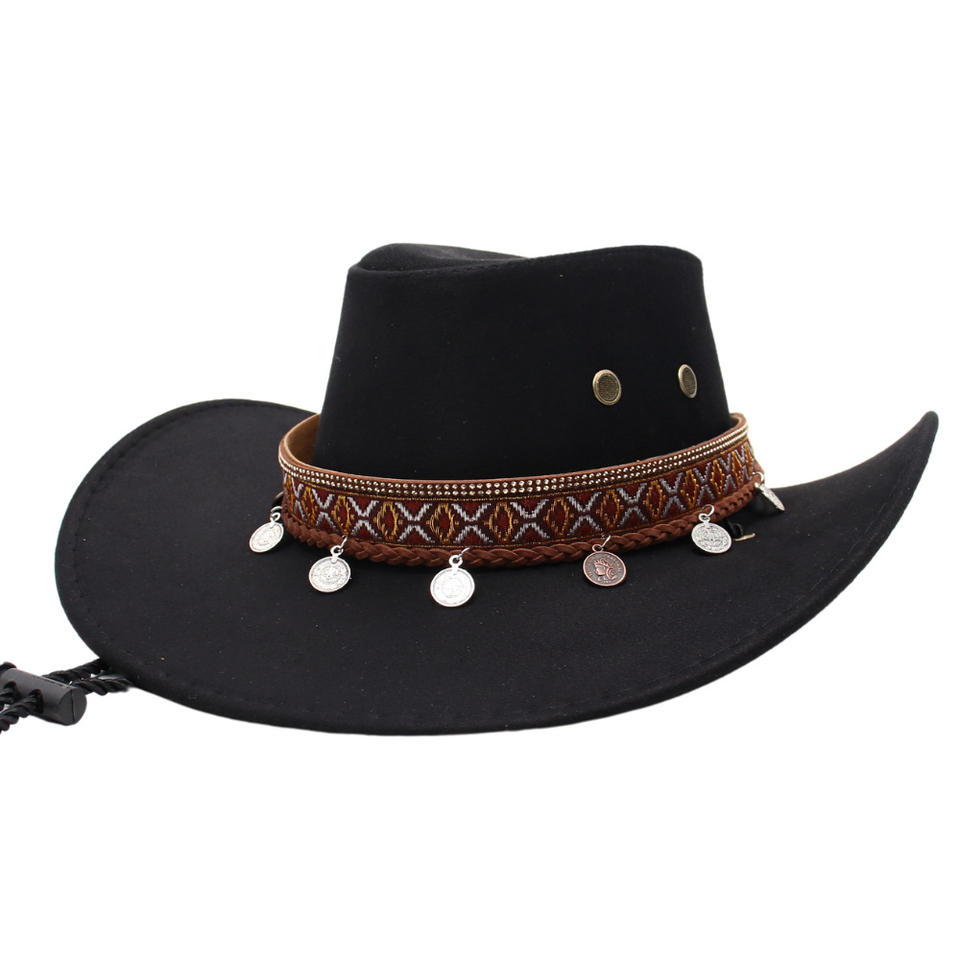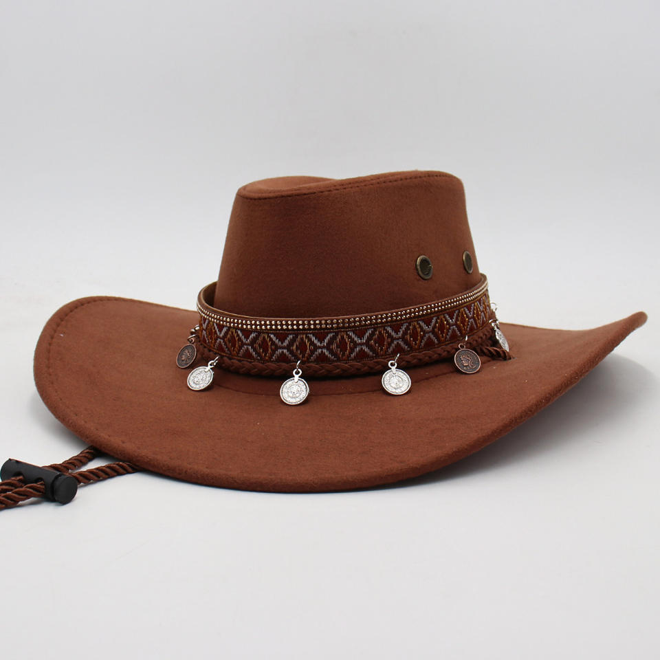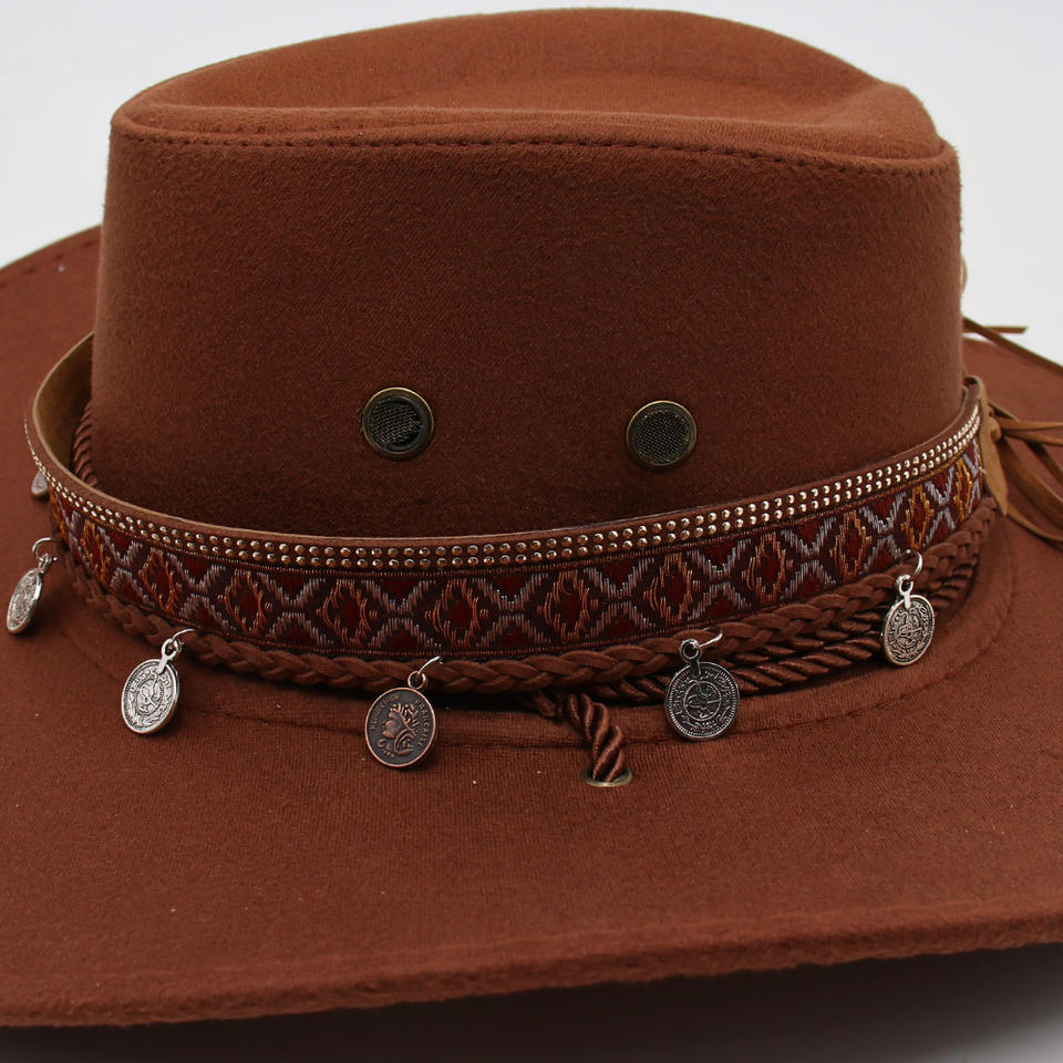 Wholesale Unisex Cowboy Hat with Embroidered Band & Coin Pendants-Fashion Style Four Seasons Use