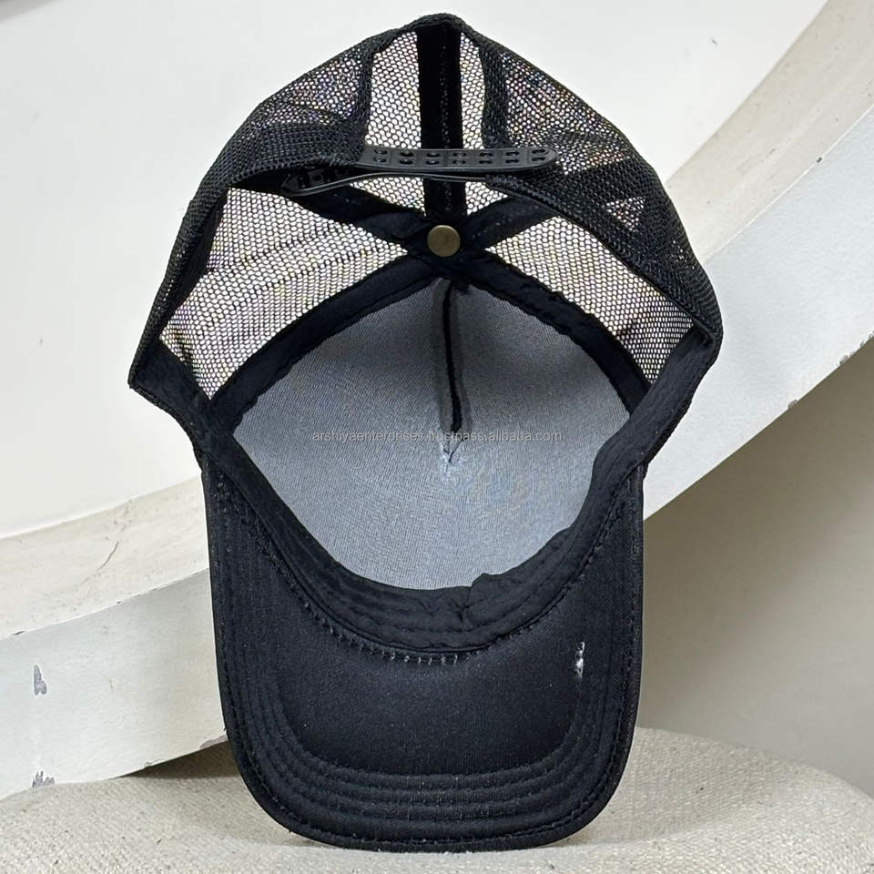 Wholesale Unisex Fashion Cowhide Black & White Checkered Trucker Cap Hand Tooled Leather Adjustable Mesh Back Western Design Hat