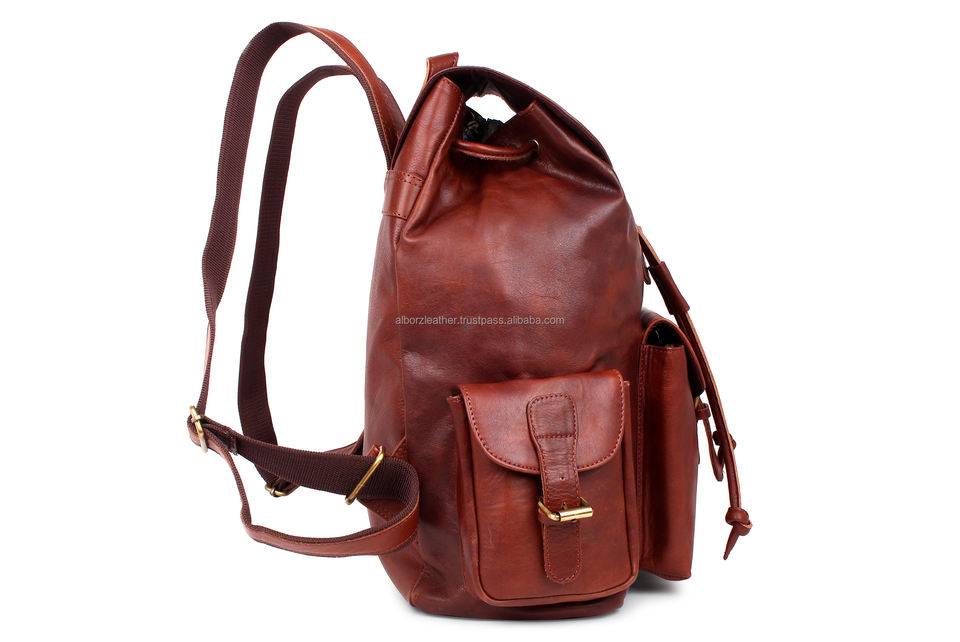 Wholesale Unisex Fashion Vintage Style Genuine Leather Drawstring Backpack High Quality School Hiking College Use 23L Capacity