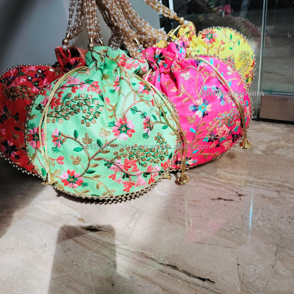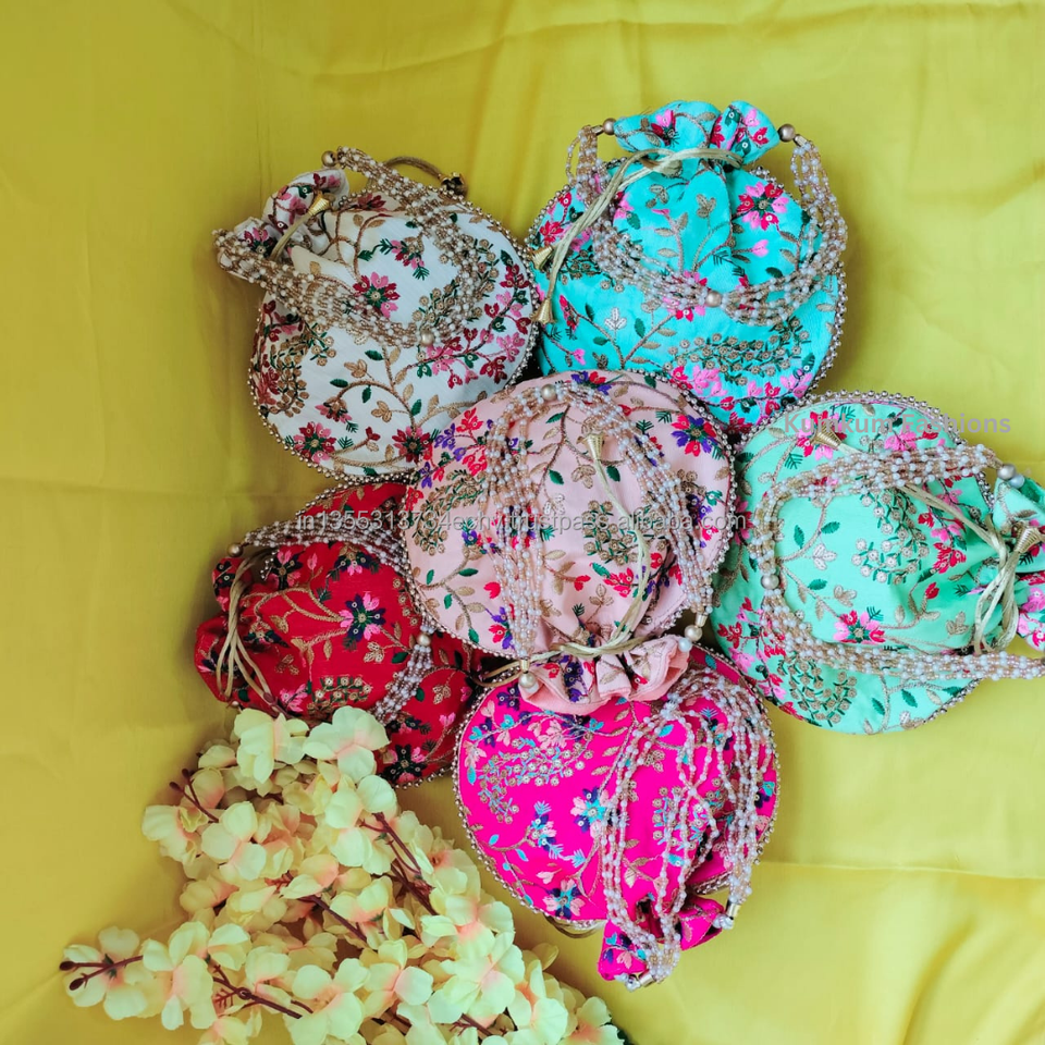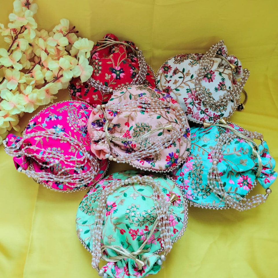 Wholesale Unisex Indian Ethnic Embroidered Potli Handmade Return Gift Bag with Print for Wedding Parties Women's Style