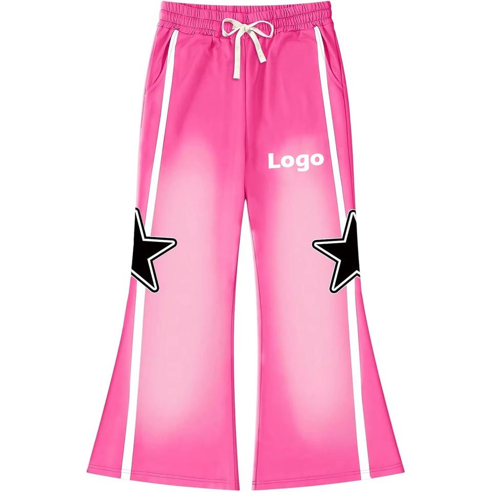 Product name:Wholesale Unisex Pink Flared Sweatpants | High-Quality Custom Print