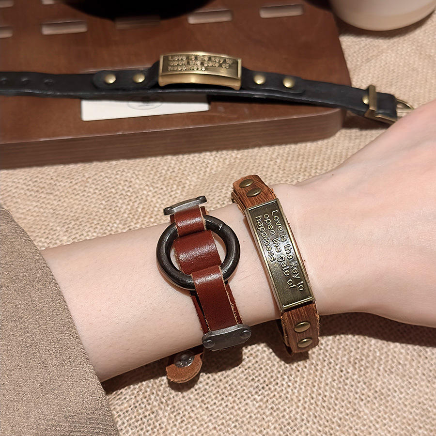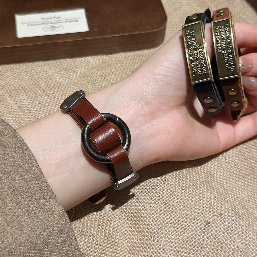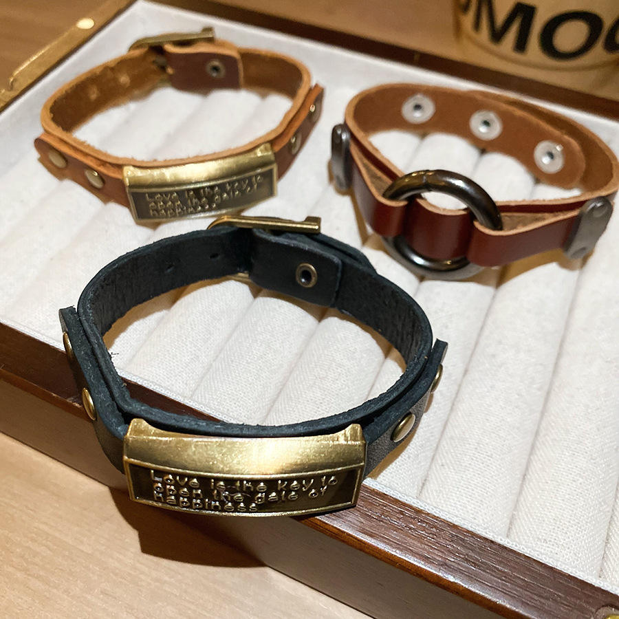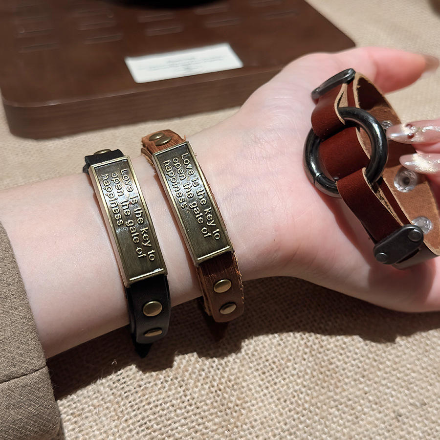 Wholesale Unisex Retro Unique Fashion Jewelry Rectangular Alphabet Leather Bracelet for Women Men