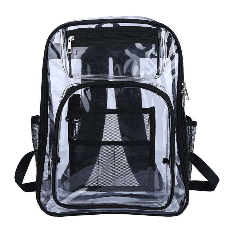 Wholesale Unisex Transparent Large Waterproof PVC Plastic Book Bags Fashionable Bow Pattern Students Backpack Zipper Closure