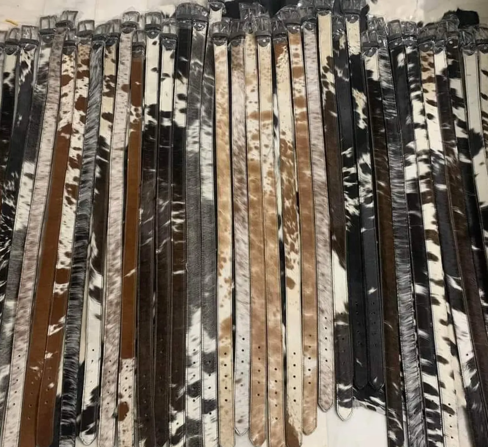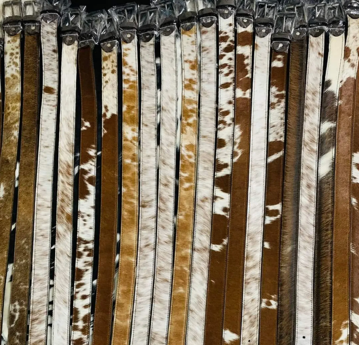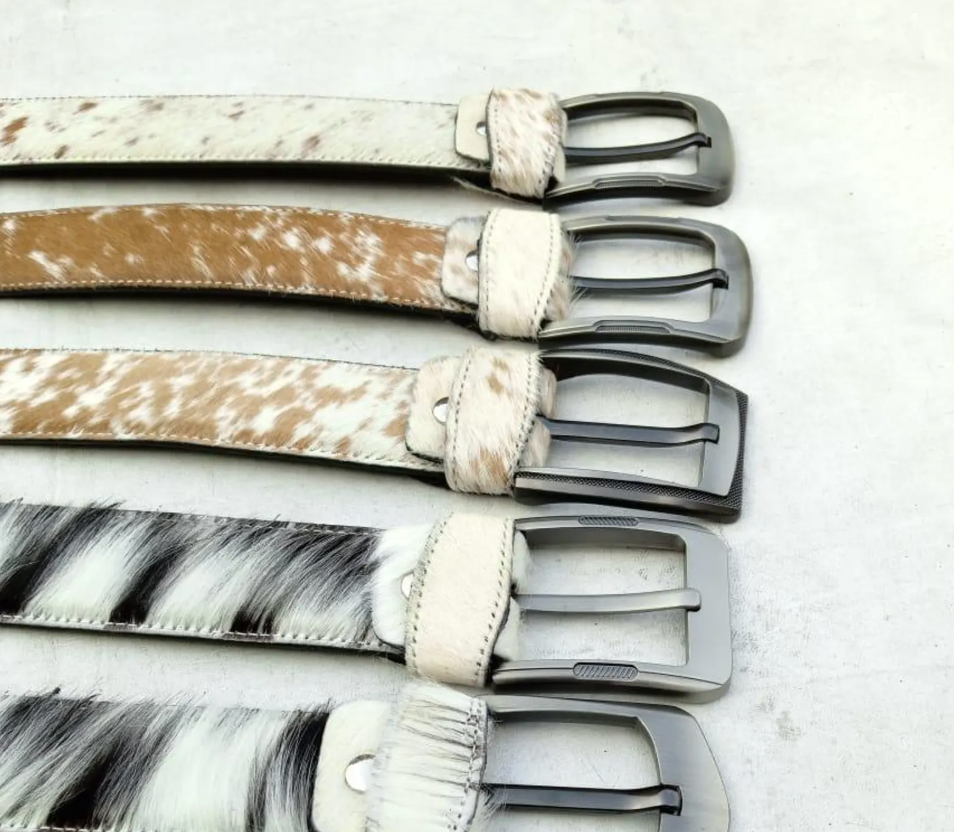 Wholesale Unisex Vintage Cowhide Hair-on Leather Belts Genuine Leather Alloy Automatic Buckle Custom Logo Handcrafted Waterproof