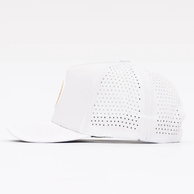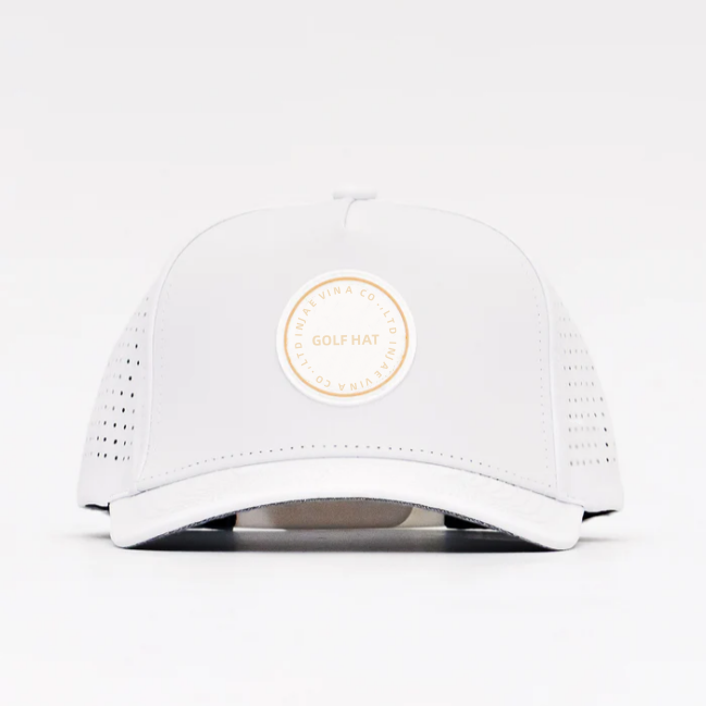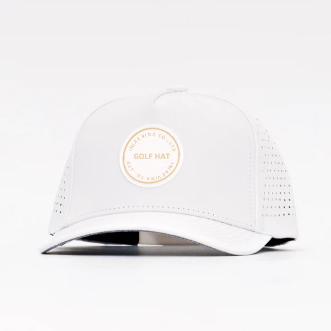 Wholesale Unisex Waterproof Quickly Dry Custom Rubber Patch Logo Breathable Laser Cut Hole Perforated 5 Panel Golf Trucker Hat