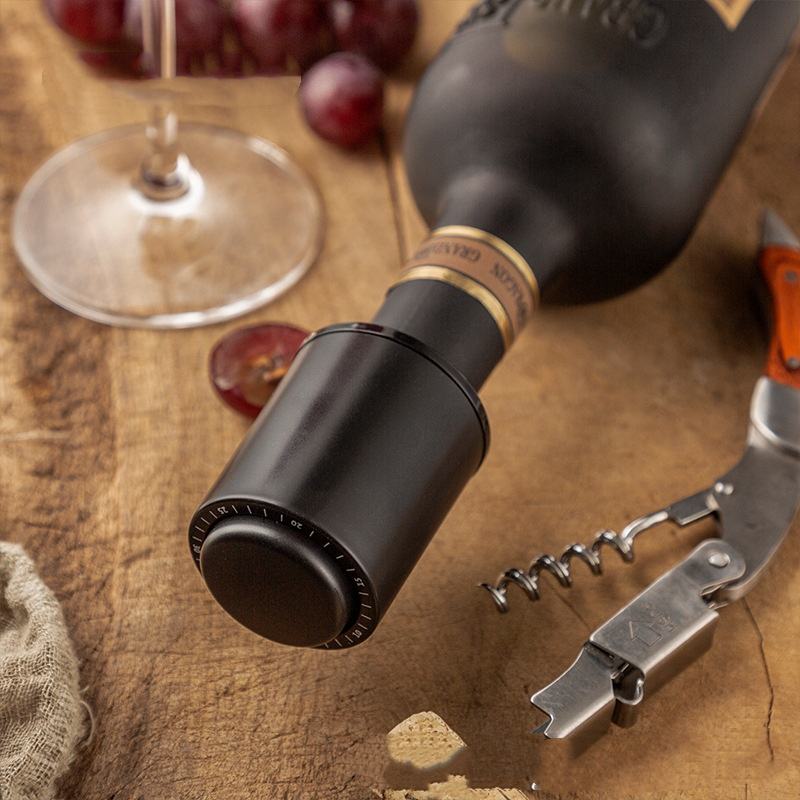 Wholesale Vacuum Wine Bottle Cap Stopper Sealed Storage Memory Push Style Barware Wood Integrated Scale Black Bar Tools