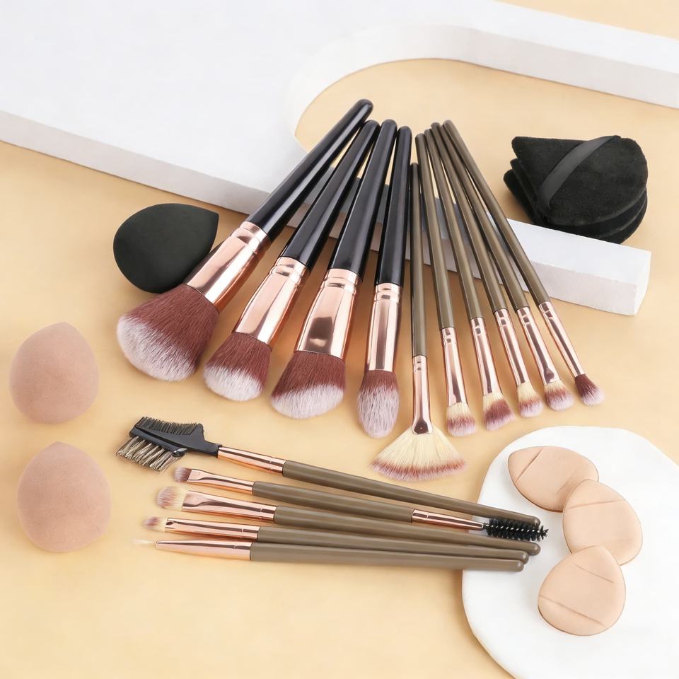 Wholesale Vegan Makeup Brush Set for Eye Shadow Professional Makeup Tool Custom Private Label Black Brown 15pcs Makeup Brush Set