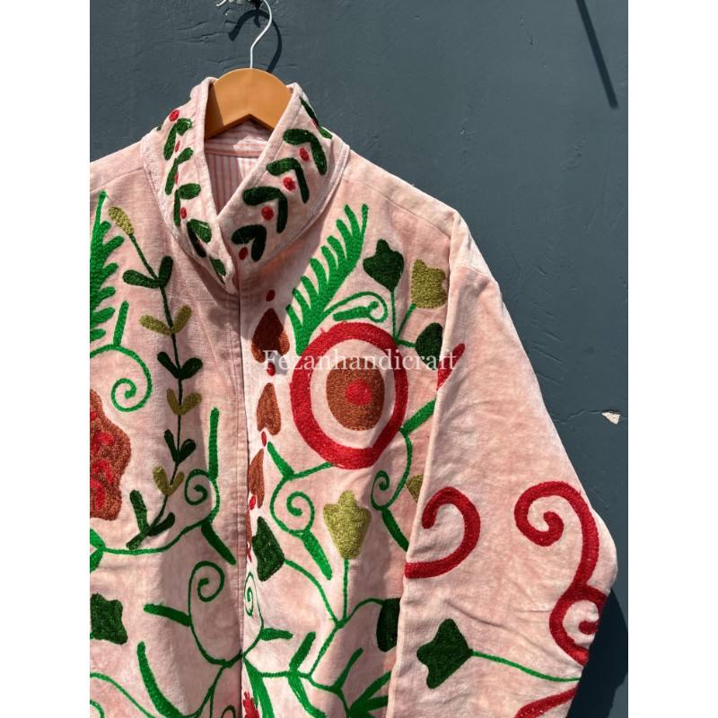 Wholesale Velvet Jacket Handmade Short Unisex Coat Floral Embroidery Jacket With Inside Cotton Lining Boho Hippies Coat