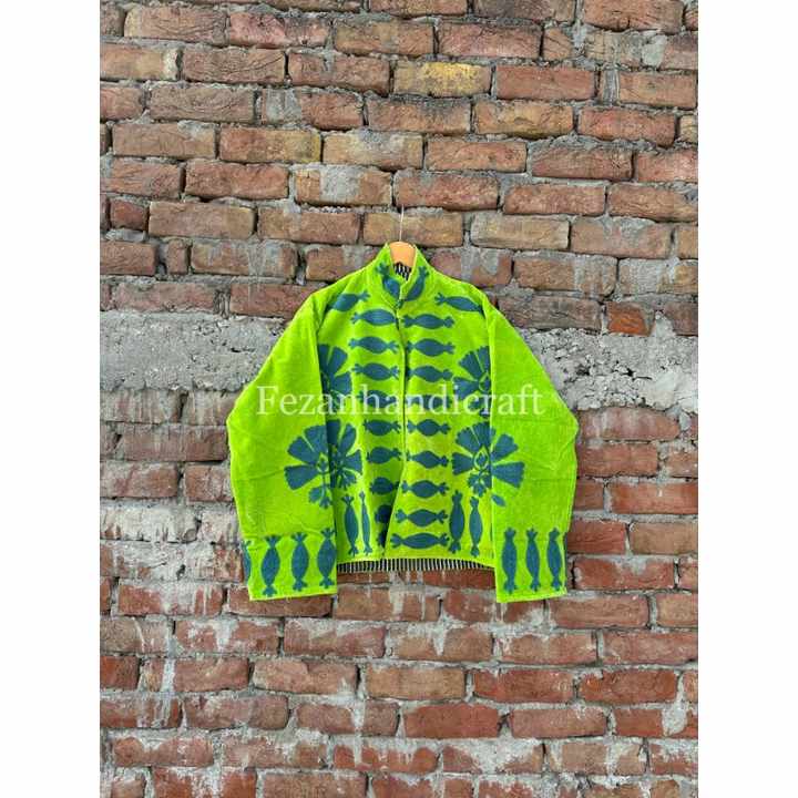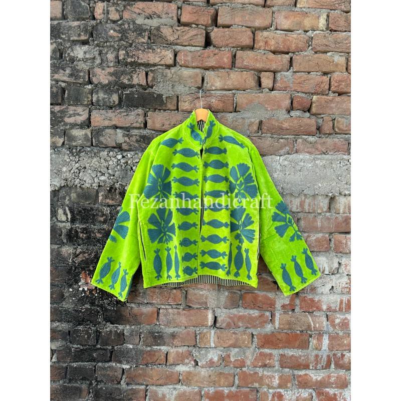 Wholesale Velvet Suzani Embroidery Floral Pattern Hand-Stitched Quilted Jacket with Stand Collar and Two Side Pockets Quick Dry