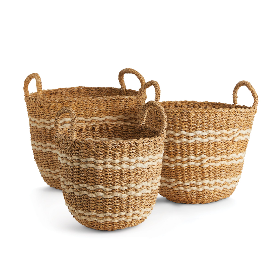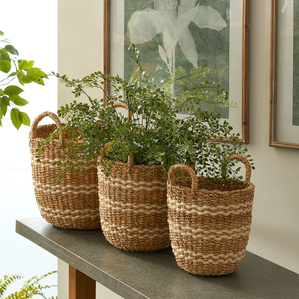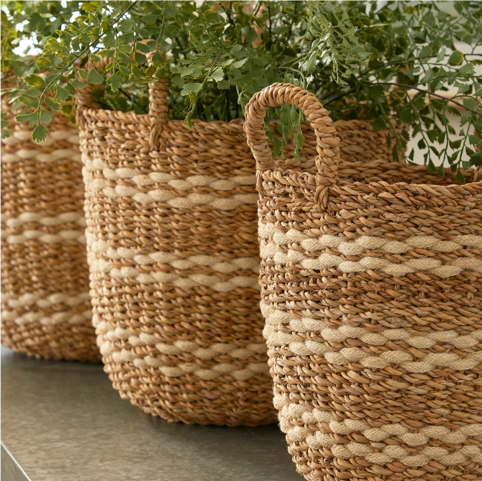 Wholesale Vietnam Hand Woven Braided Seagrass Basket Storage with Handles Seagrass Laundry Basket Seagrass Plant Basket