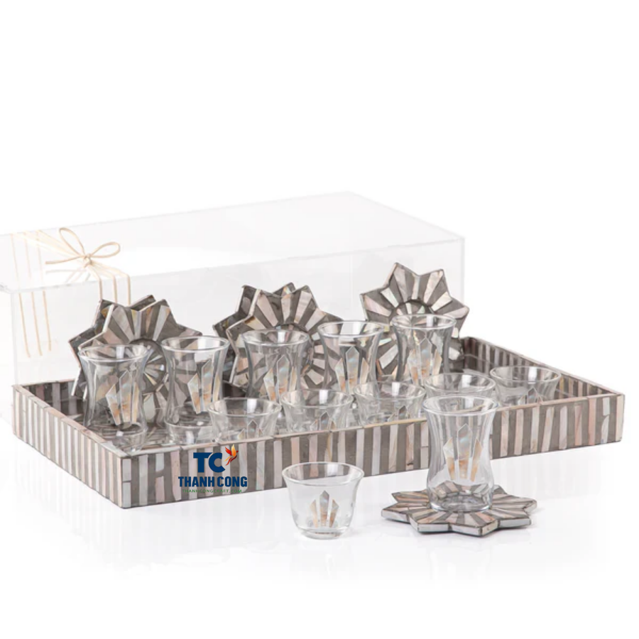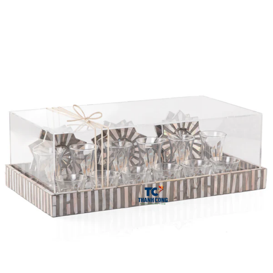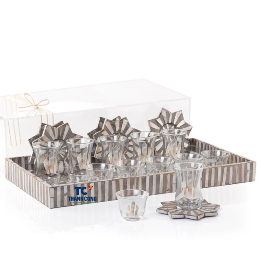 Wholesale Vietnam Handmade MOTHER OF PEARL GLASS CUP HOLDER with Acrylic Case Islamic Ramadan Eid Gift Inlaid Glass Rack