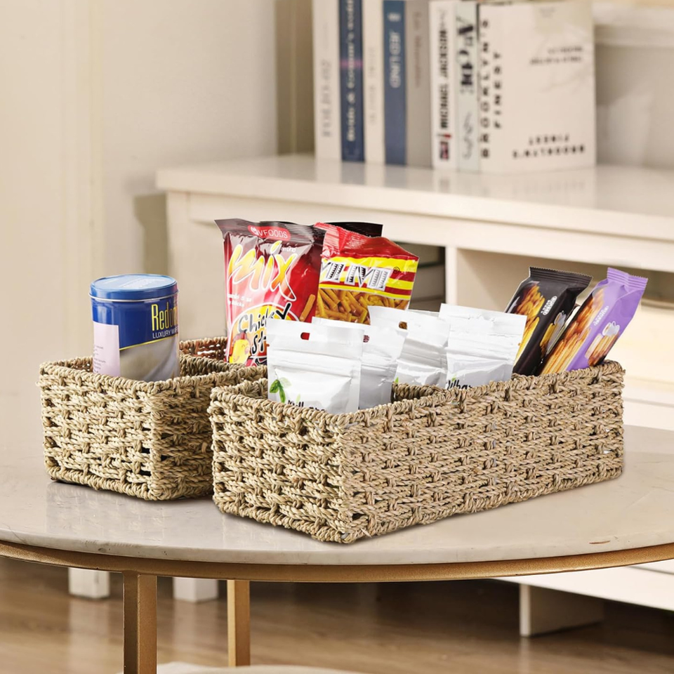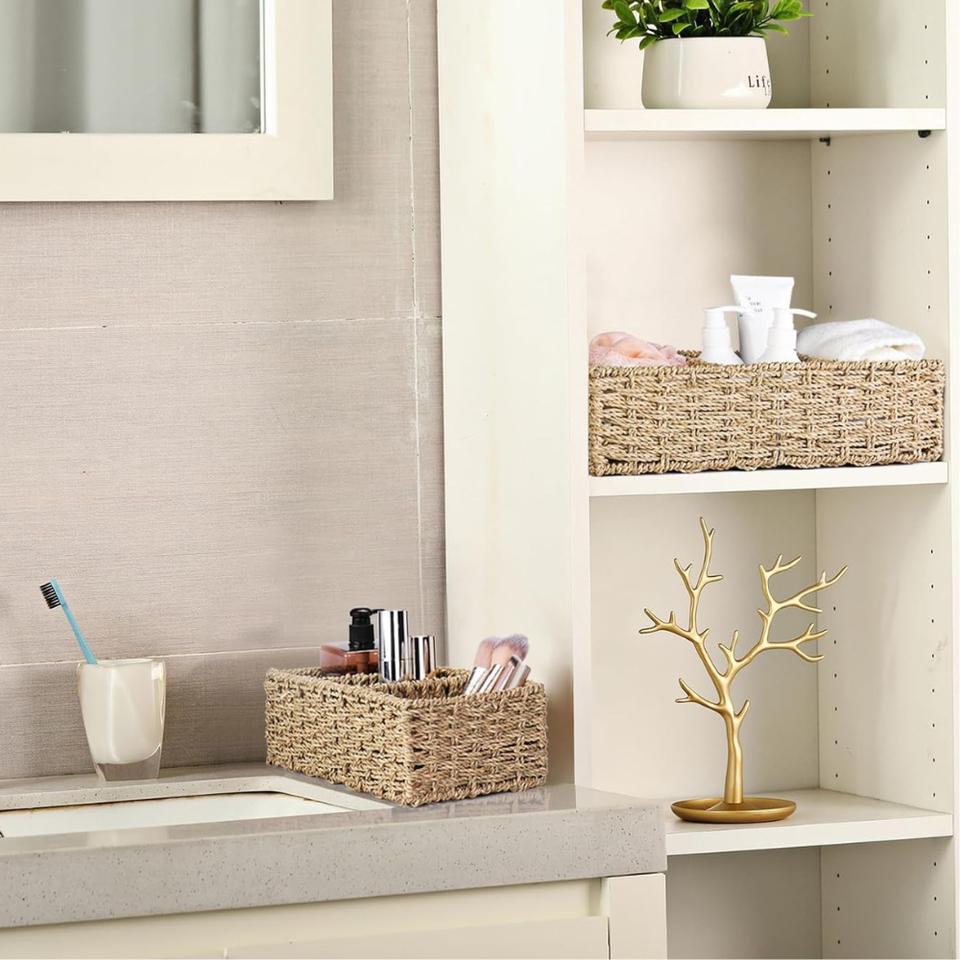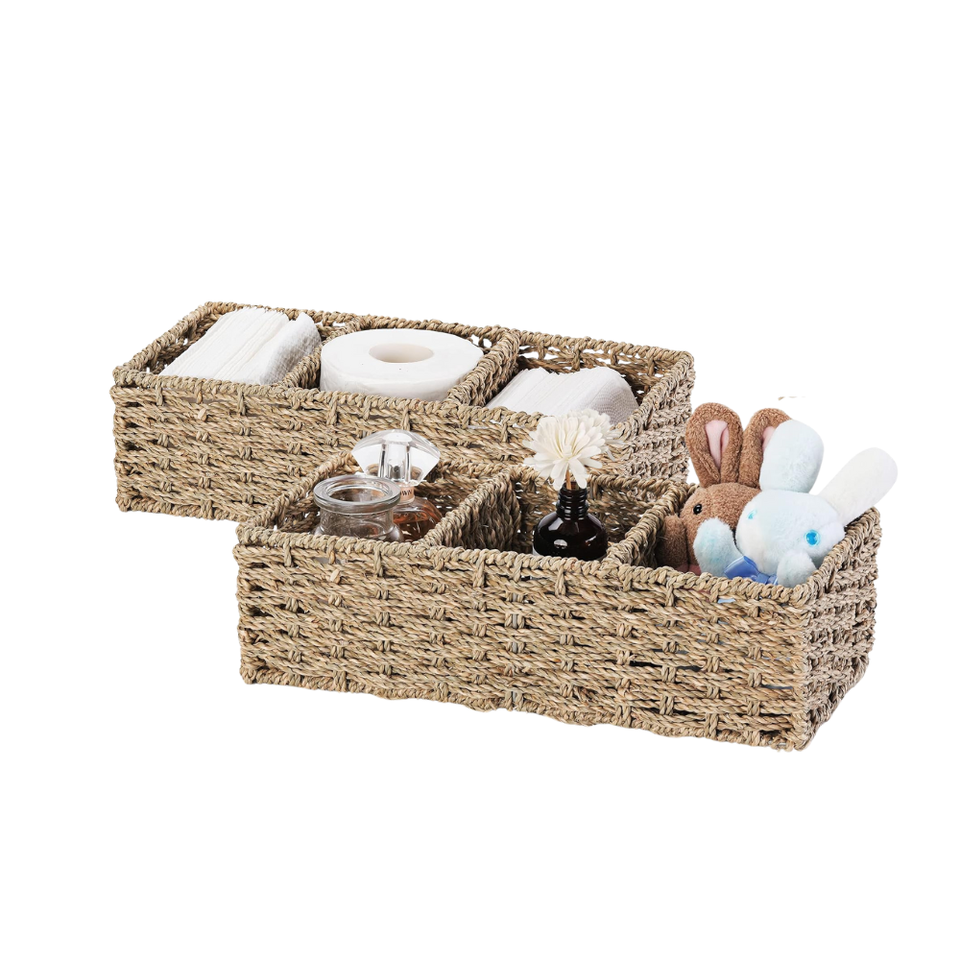 Wholesale Vietnam-Made Rectangle 3-Section Seagrass Woven Basket Colorful Toys Storage for Bathroom Kitchen
