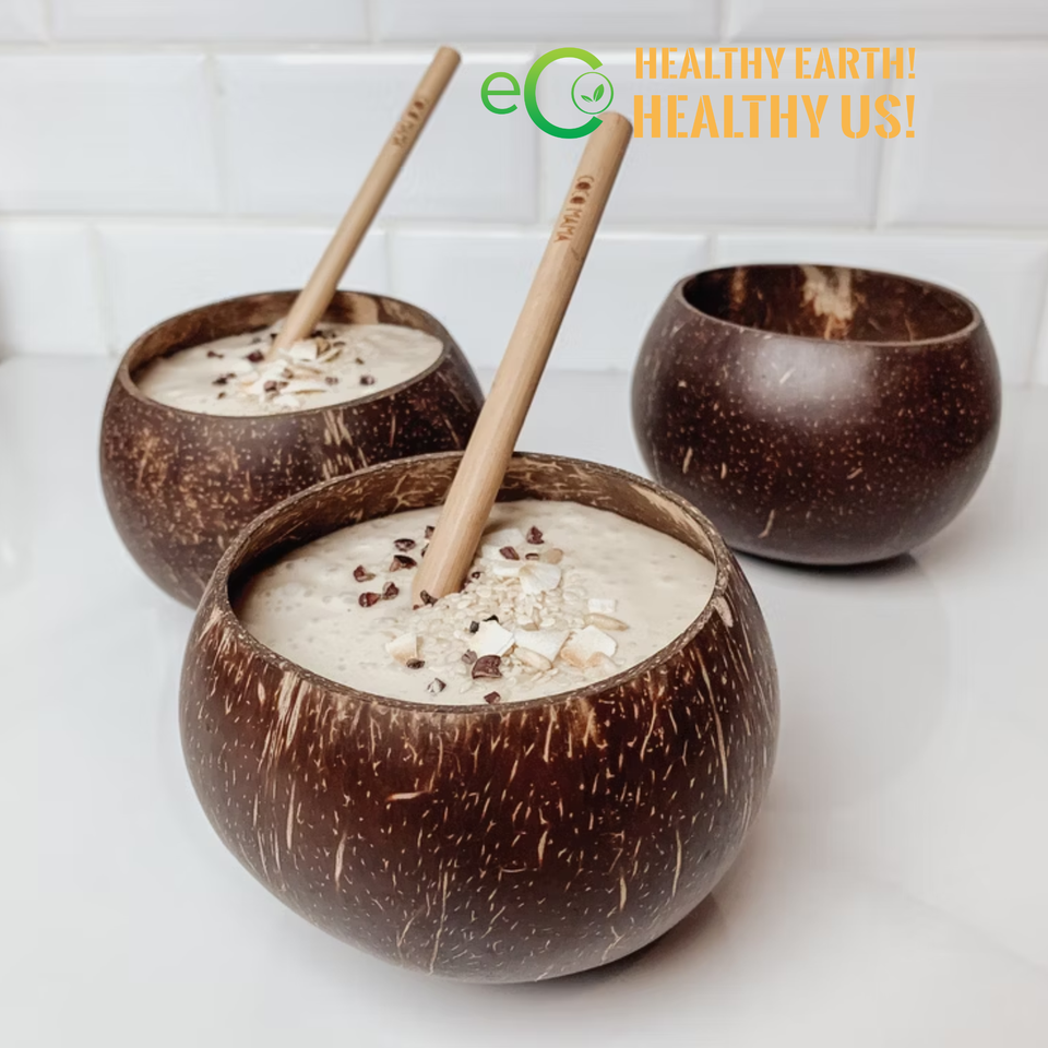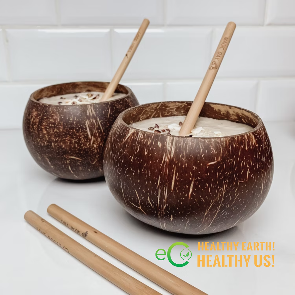 Wholesale Vietnamese Coconut Drinking Cups With Straws/ Natural Coconut Coffee Cup Custom Logo High Quality From Eco2go Vietnam