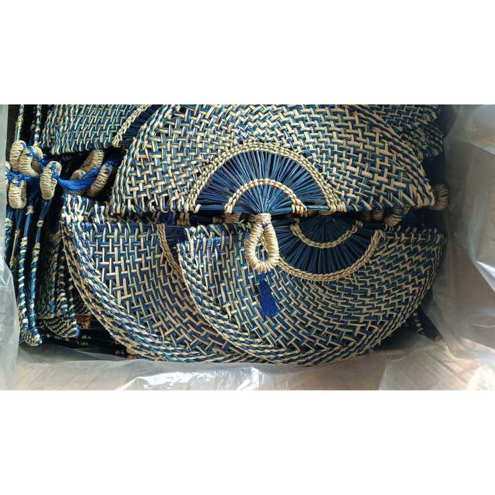 Wholesale Vietnamese Exporter Unique Design Seagrass Fan Bamboo Hand Fan Hand Fans Wholesale Handmade Straw Seagrass Handfan.