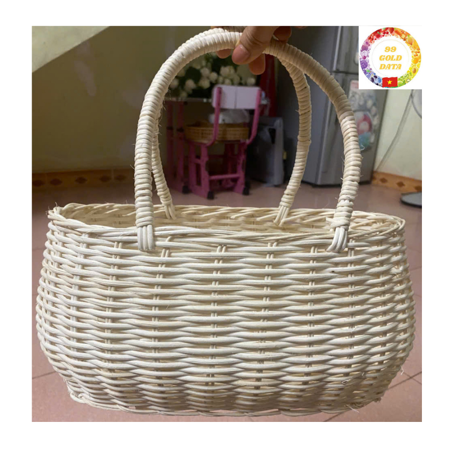 Wholesale Vietnamese Handmade Woven Straw Rattan Bag with Leather Handle for Women Summer Beach Resort Casual