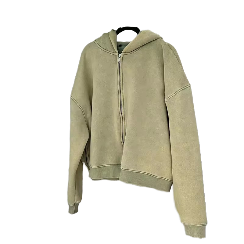 Wholesale Vintage Acid Wash Zip Hoodie Streetwear Heavyweight Stone Wash Cropped Boxy Zip Hooded Enzyme Wash Technics