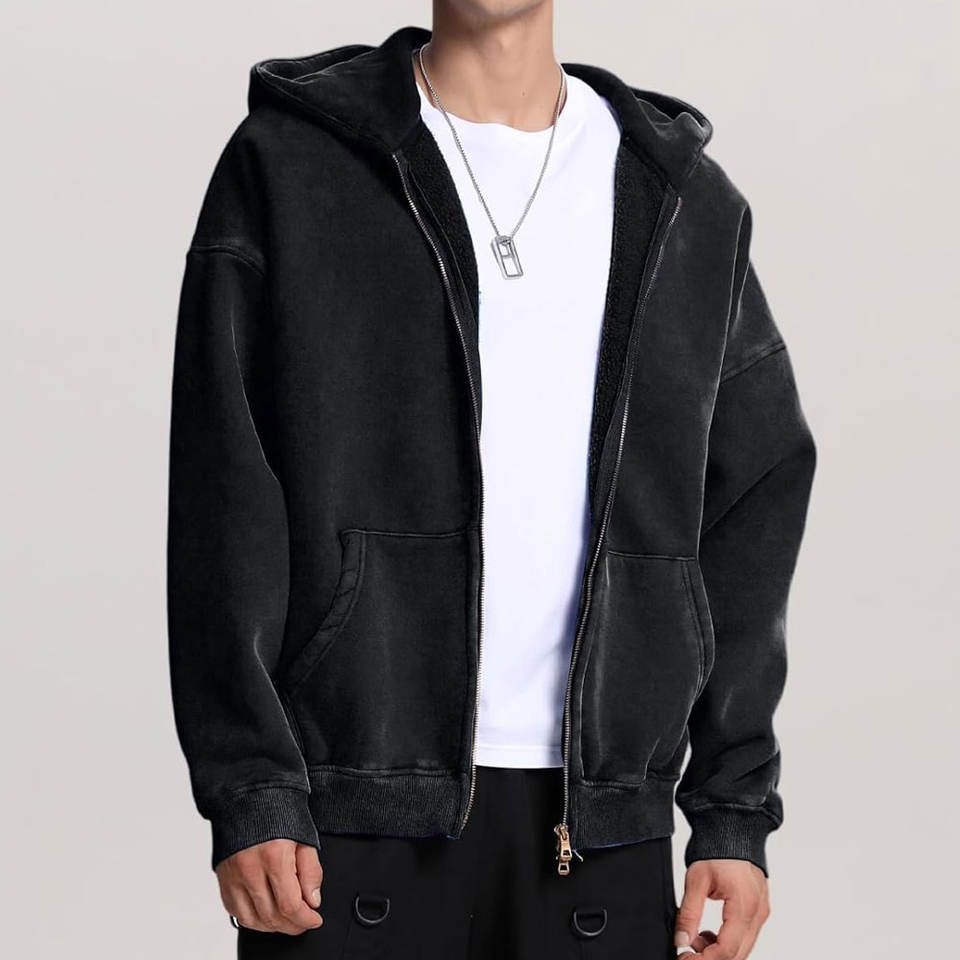 Wholesale Vintage Acid Wash Zip up Hoodie Long Sleeve Custom Logo Letter Zipper Distressed Design Oversized Boxy Hoodie Hoodies