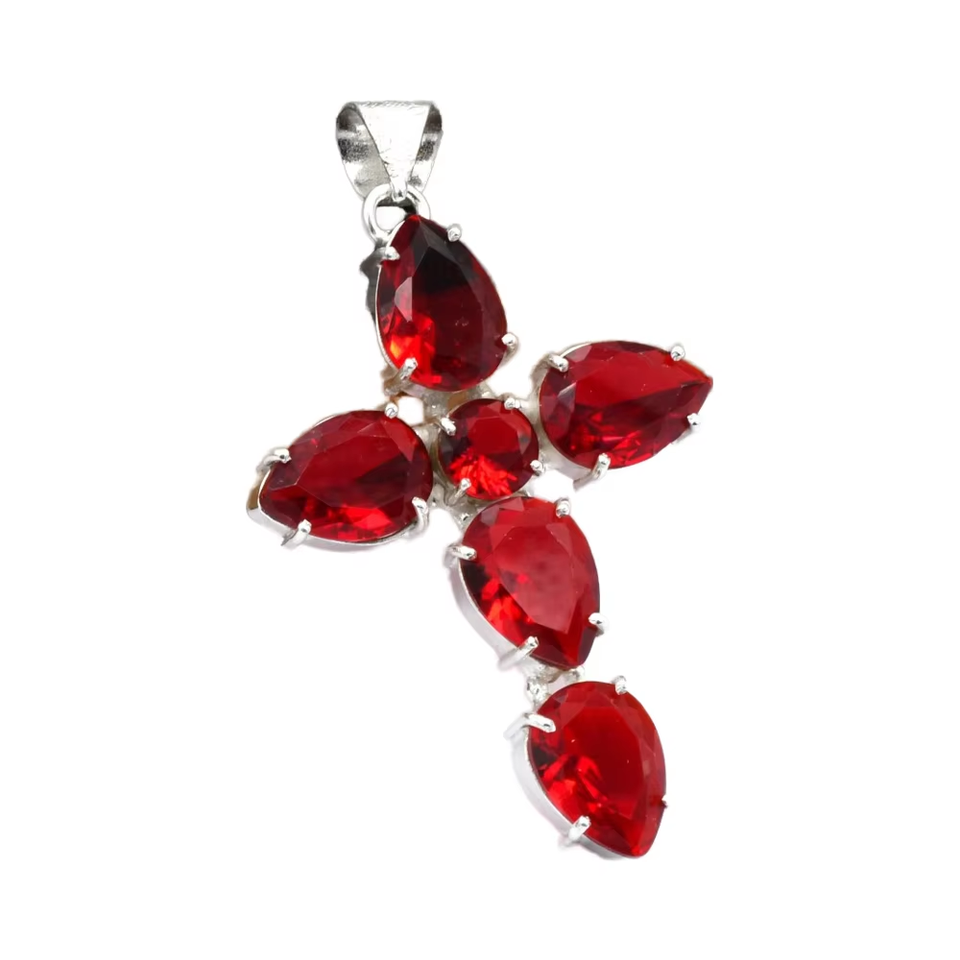 Wholesale Vintage Brass Pendant Necklaces Assorted Geometric Crystals Gemstones Featuring Red Garnet Gemstone for Christian