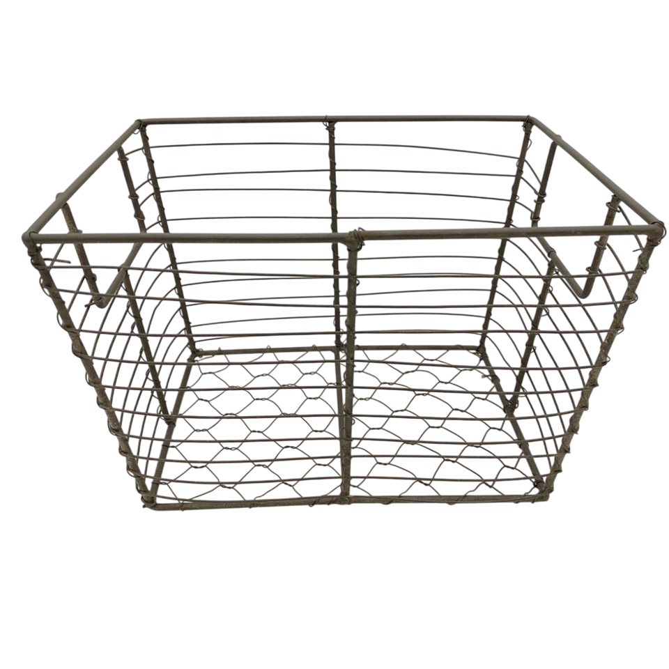 Wholesale Vintage Farmhouse Style Grey Metal Wire Storage Basket With Handles Square Steel Mesh Bin For Home And Display On Sale