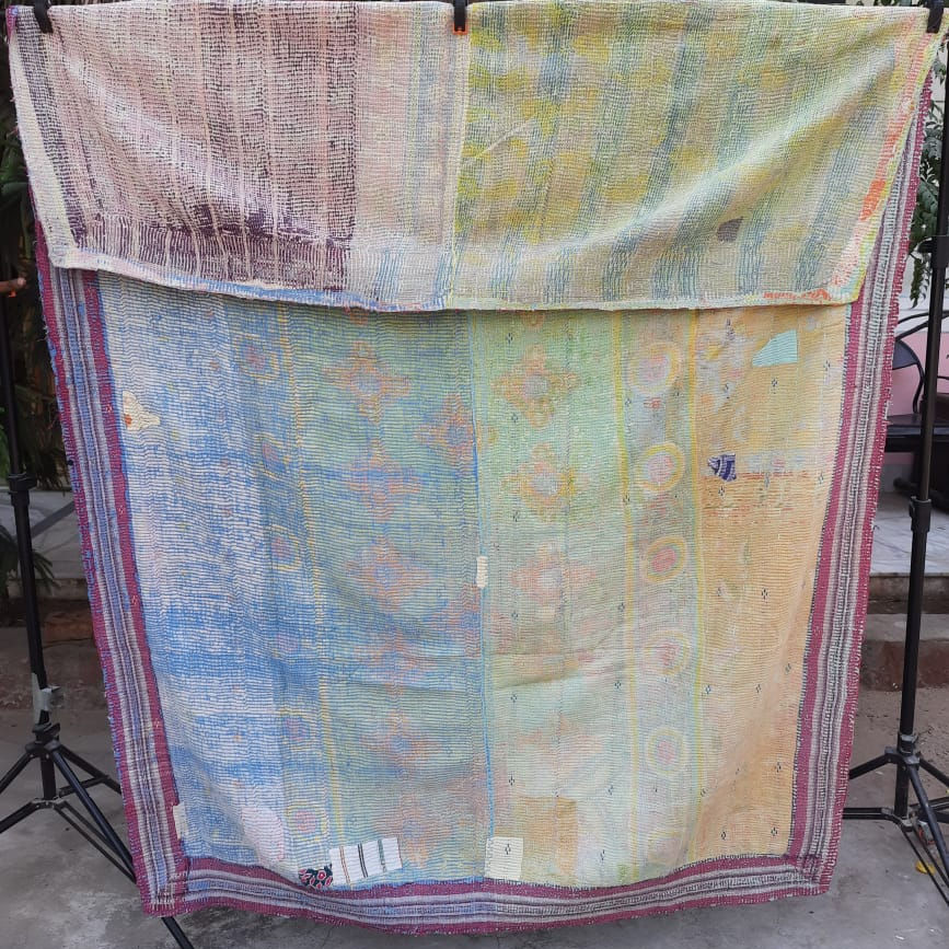 Antique Kantha Quilt With Hand Stitch Embroidery