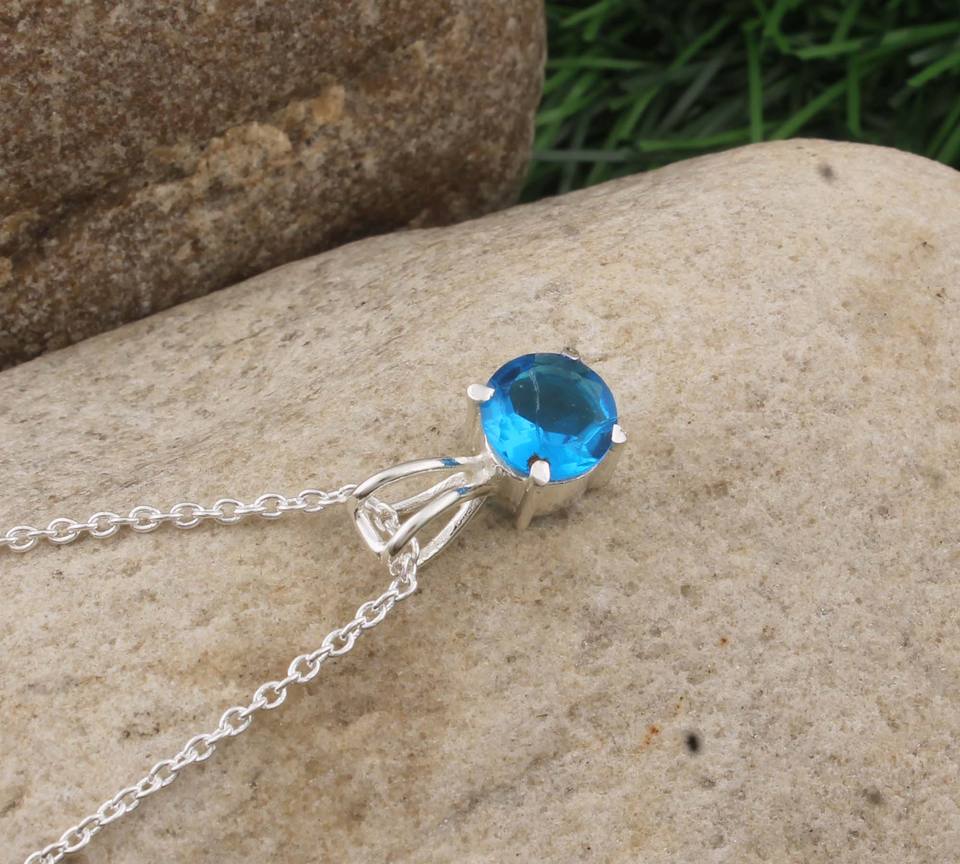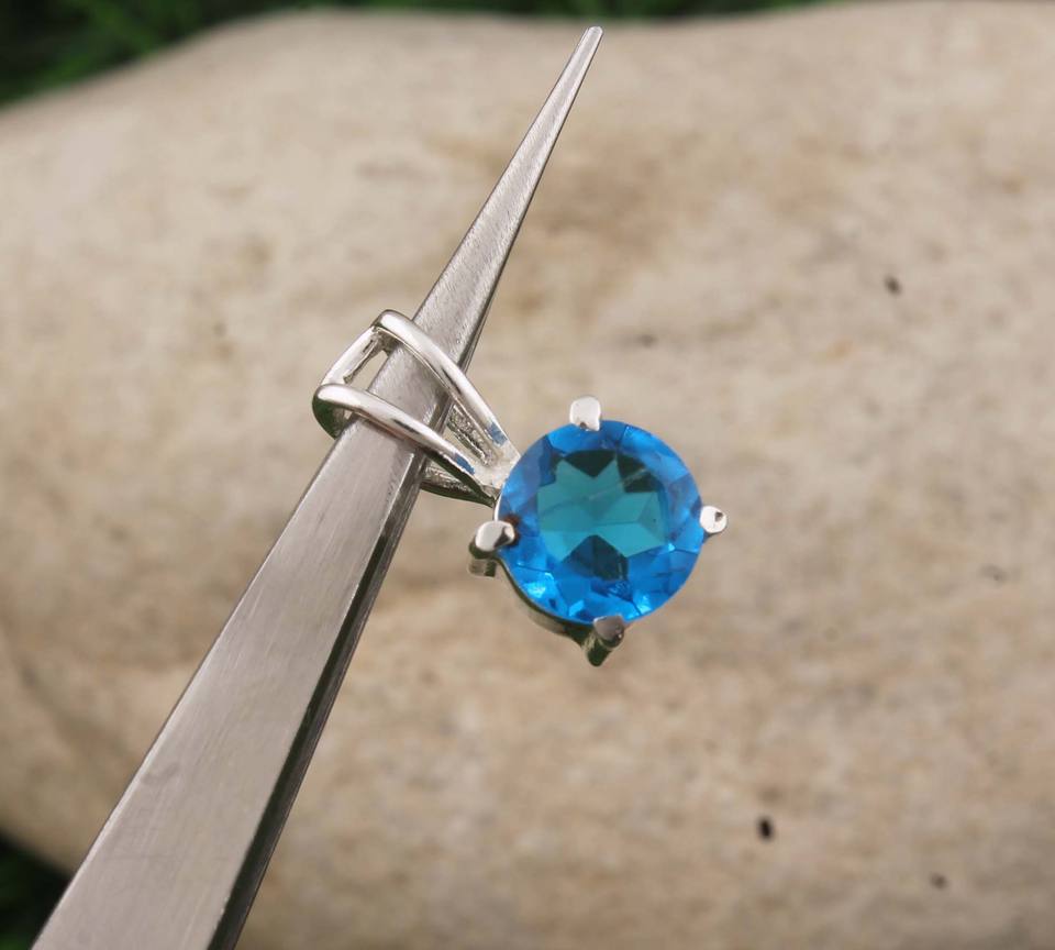 Wholesale Vintage Natural Blue Topaz Pendant 925 Sterling Silver Platinum Plated Charm Jewelry Bulk Price Factory Direct