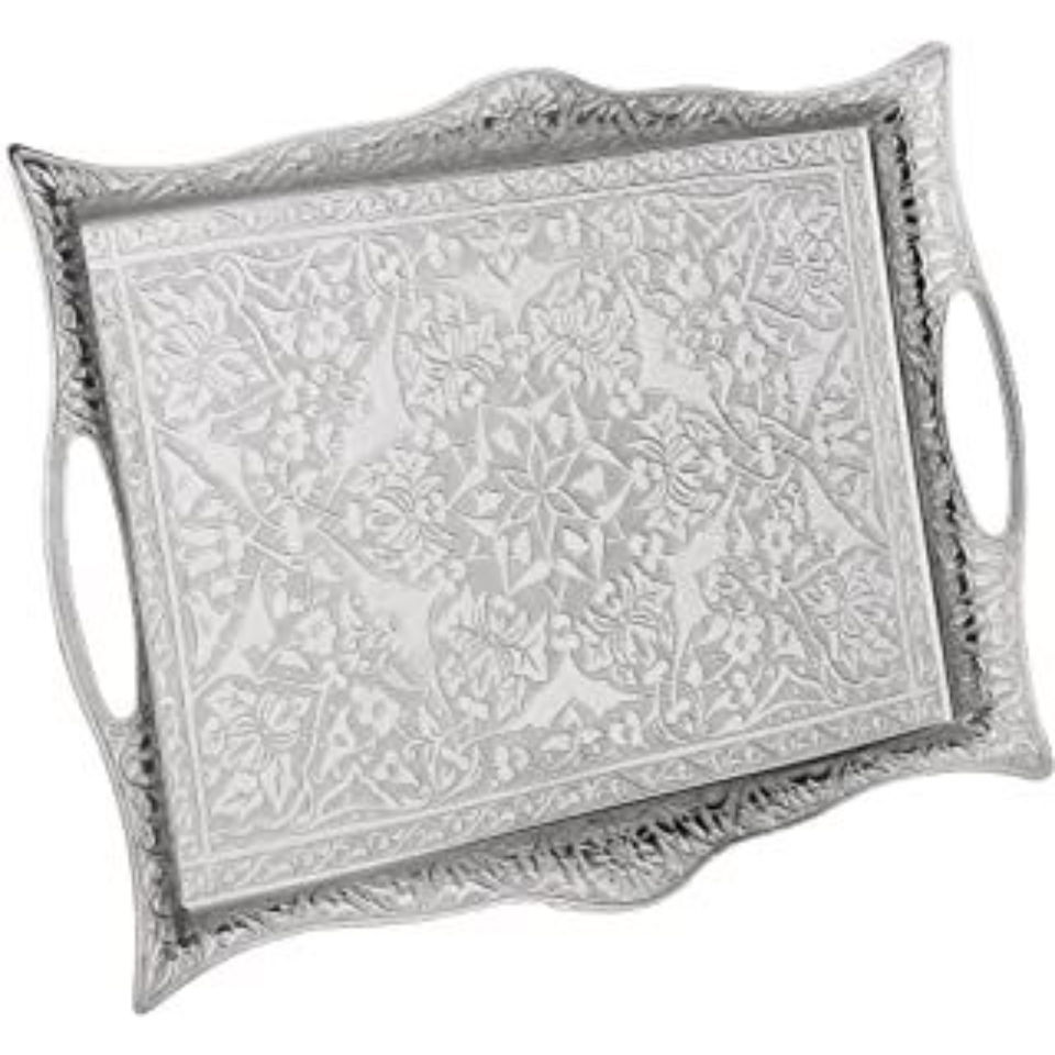 Wholesale Vintage Oval Silver Plated Moroccan Serving Tray With Handles Ornate Engraved Antique Style Metal Drinks Platter Sale