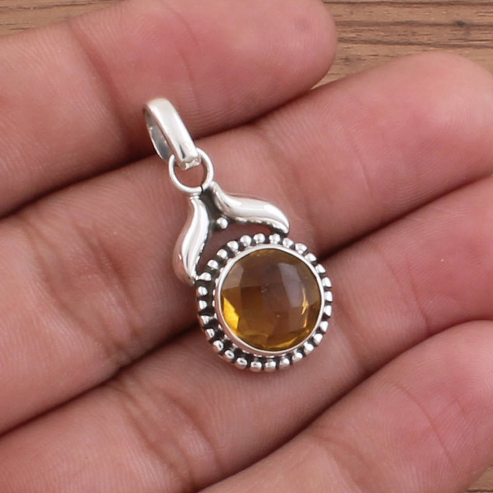 Wholesale Vintage Platinum Plated Natural Citrine Pendant 925 Sterling Silver Yellow Gemstone Charm Manufacturer Bulk Price