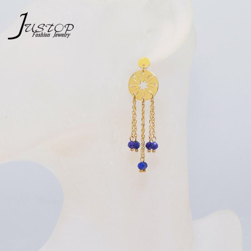Wholesale Vintage Stone Jewelry Star Charm Drop Lazurite Boho Long Multi Color Seed Bead Tassel Earrings Environmental Friendly