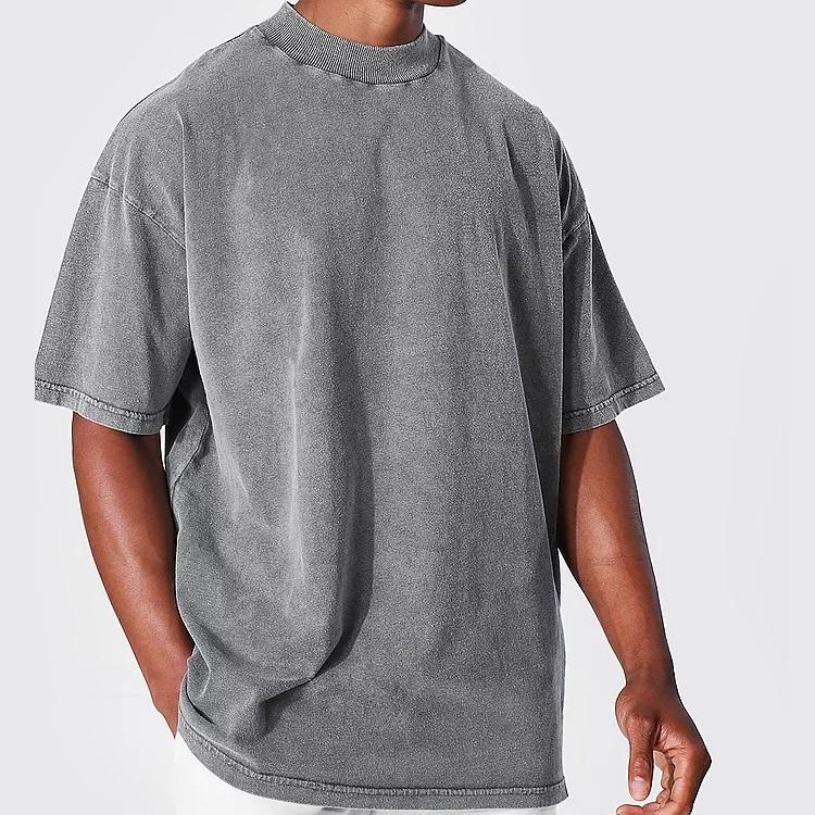 Wholesale Vintage Style Acid Wash Sun Fade T-Shirt Men Heavyweight Cotton Oversize Loose Drop Shoulder Plain Jersey Blank Shirts