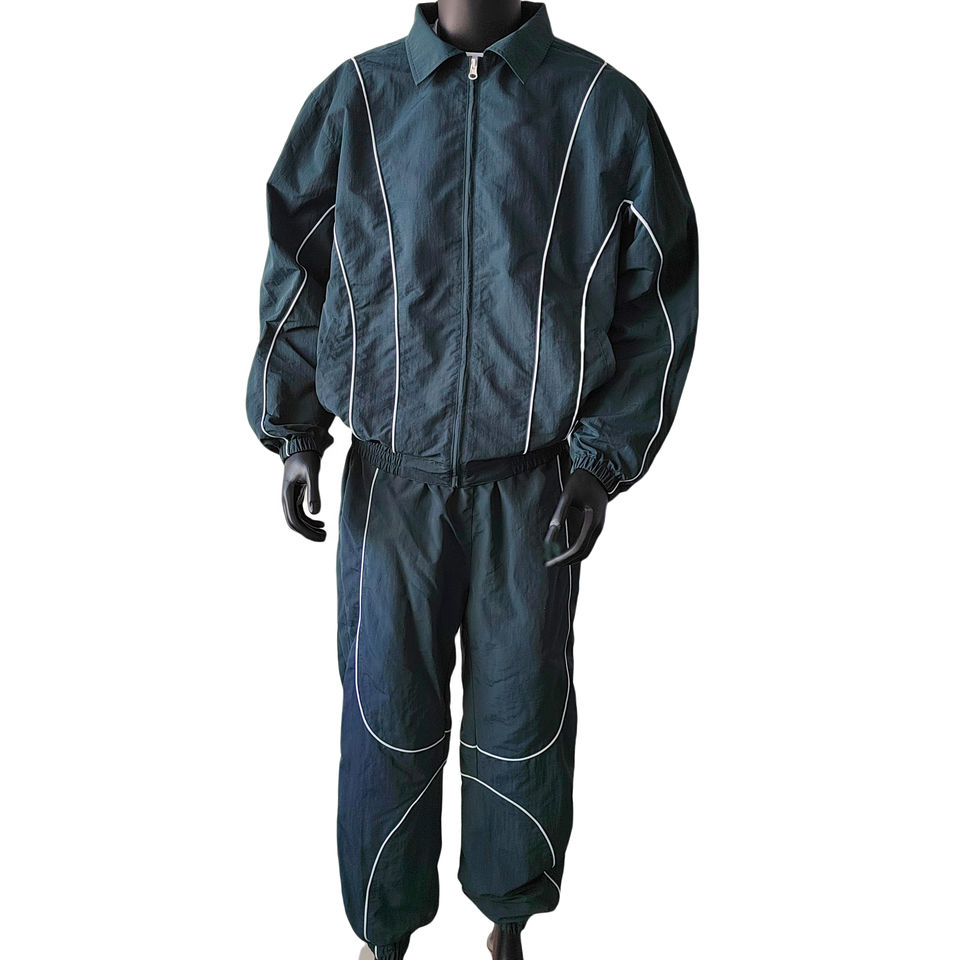 Wholesale Vintage Waterproof Windbreaker Men's Sportswear Jacket Set Baggy Oversized Heavyweight Running Jogging Set Windbreaker