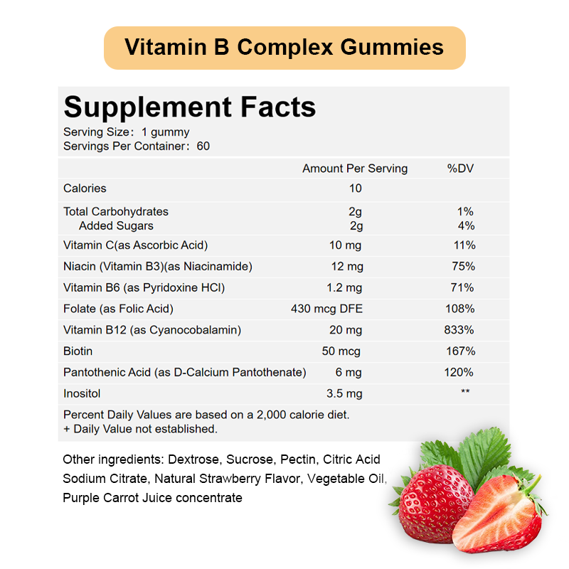 Wholesale Vitamin B Complex Gummies with Folate 60 Count Bulk Supply Competitive Factory Price for Energy Mood Support