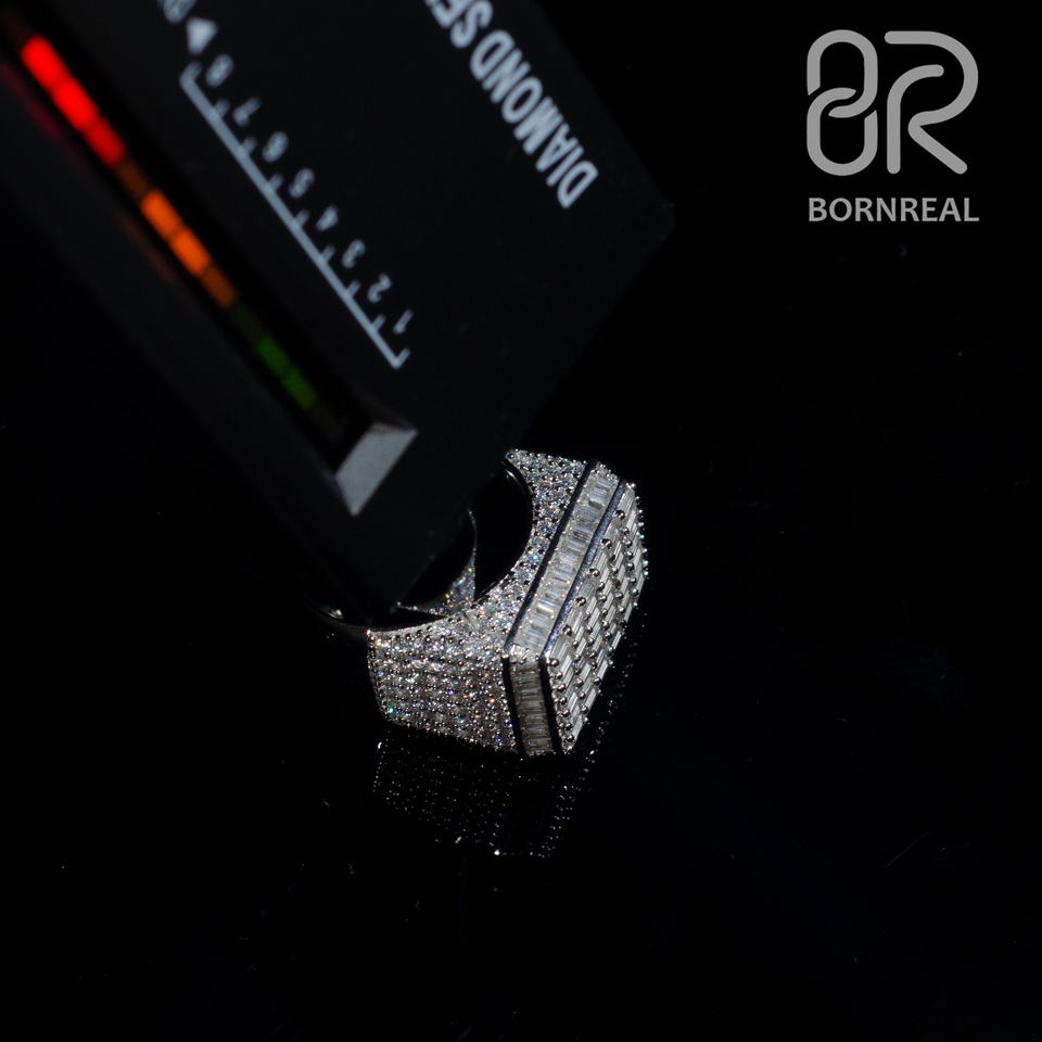 Wholesale Vvs Mossiinate Diamond Ring GRA Certified Iced Out Baguette Cut 925 Silver Hip Hop Jewelry Rings for Men Women