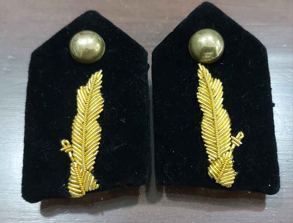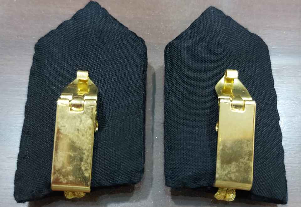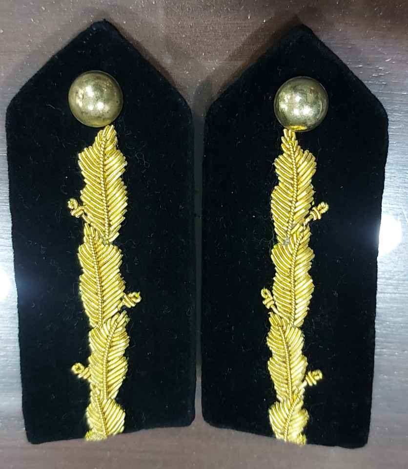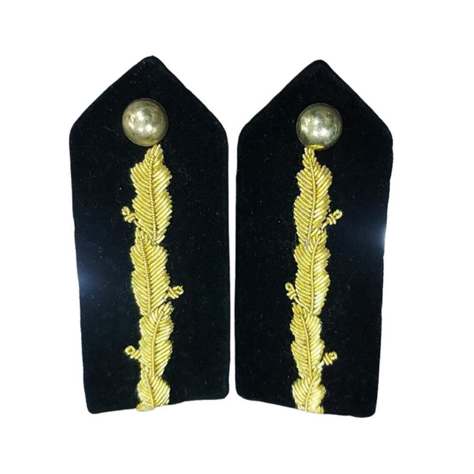 Wholesale WOK Collar Patches in Black Velvet Fabric with Gold Bullion Wire Embroidery Brass for Hat Uniforms