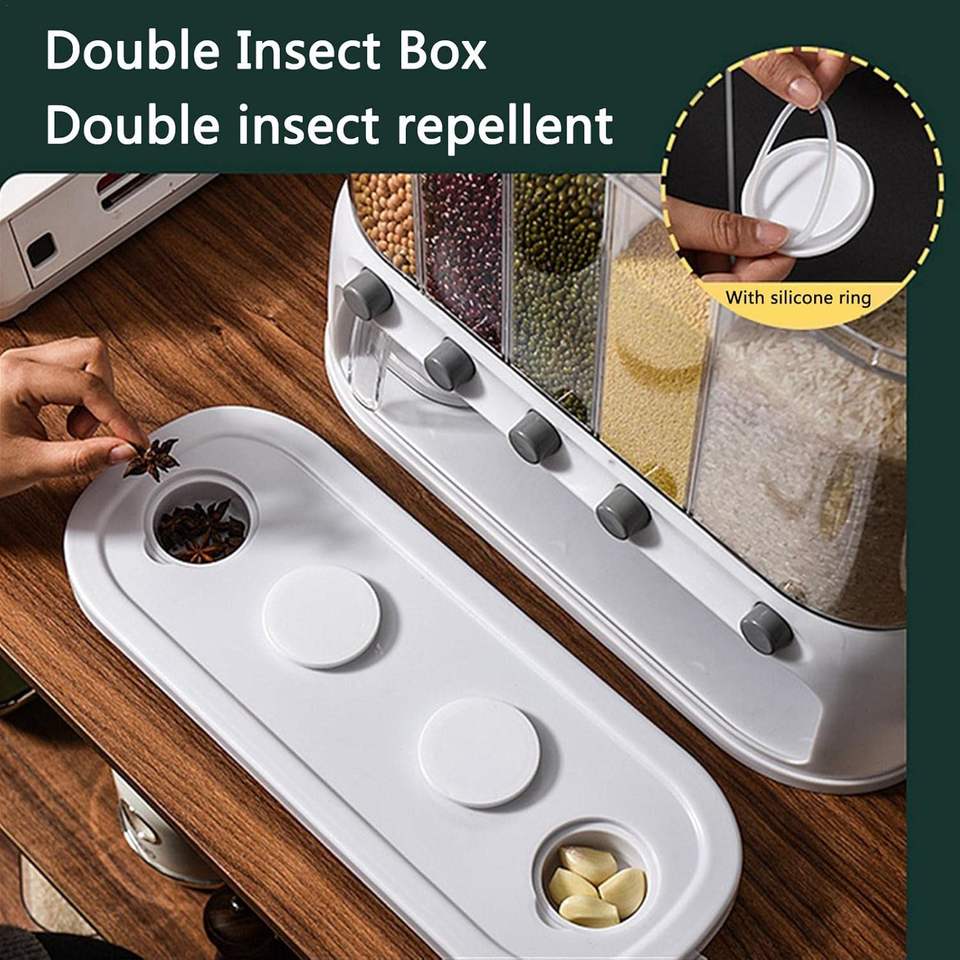 Wholesale Wall Mounted 6 Grid Large Cereal Dispenser with Measuring Cup for Kitchen Dry Food Grain Rice Storage Container 22Lbs