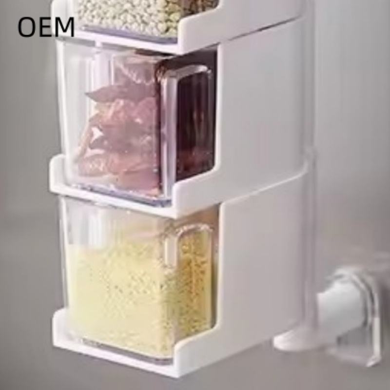Wholesale Plastic Wall-mounted Seasoning Box Spoon Storage Set Spice Box Kitchen Storage Tools Organizer Multi-layer Rotating