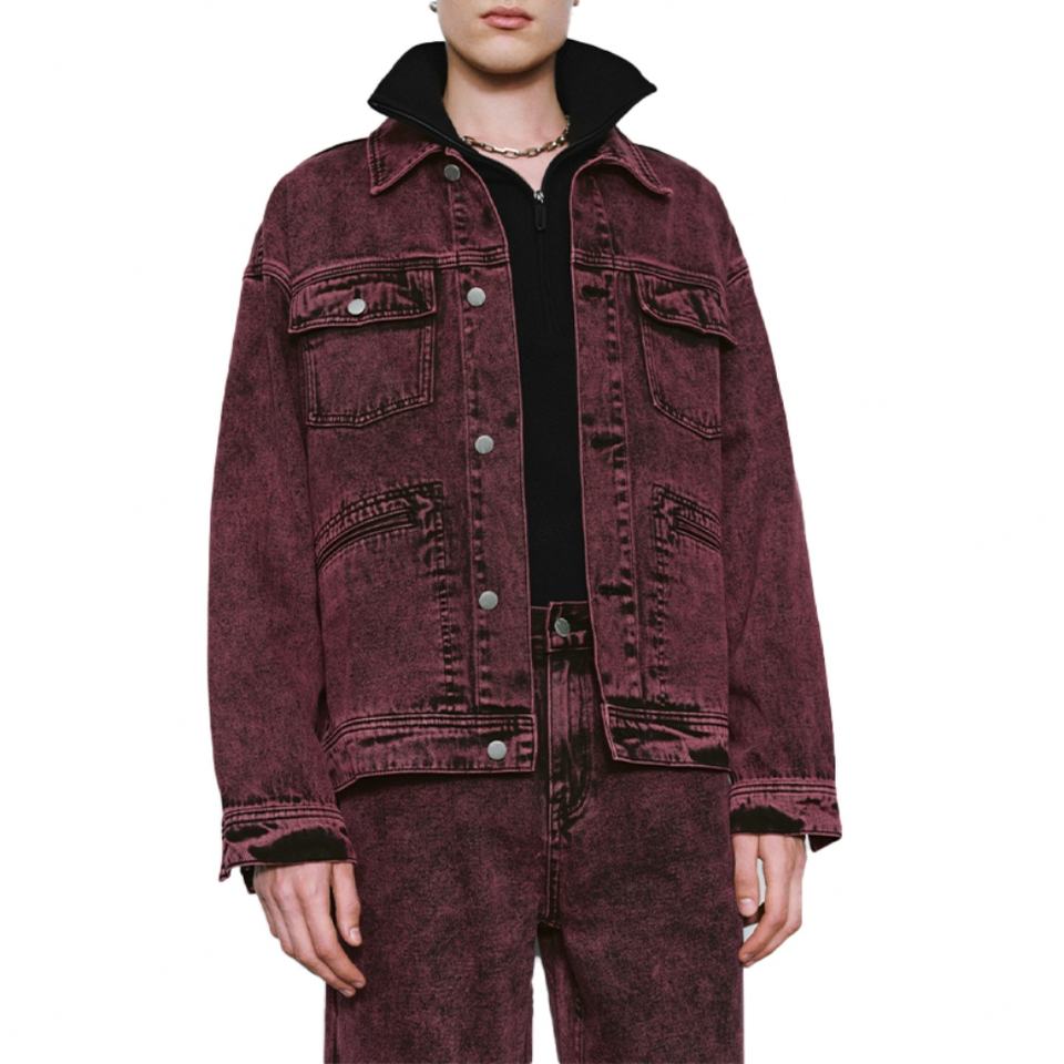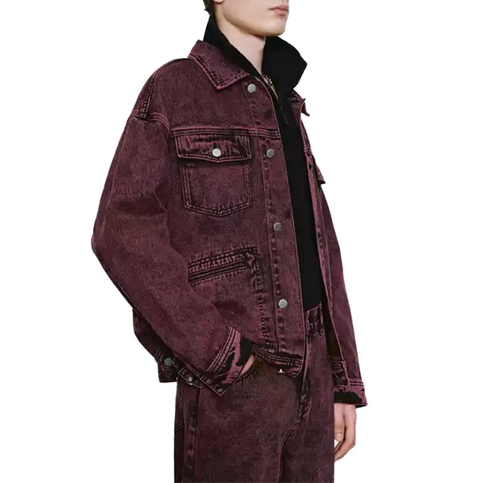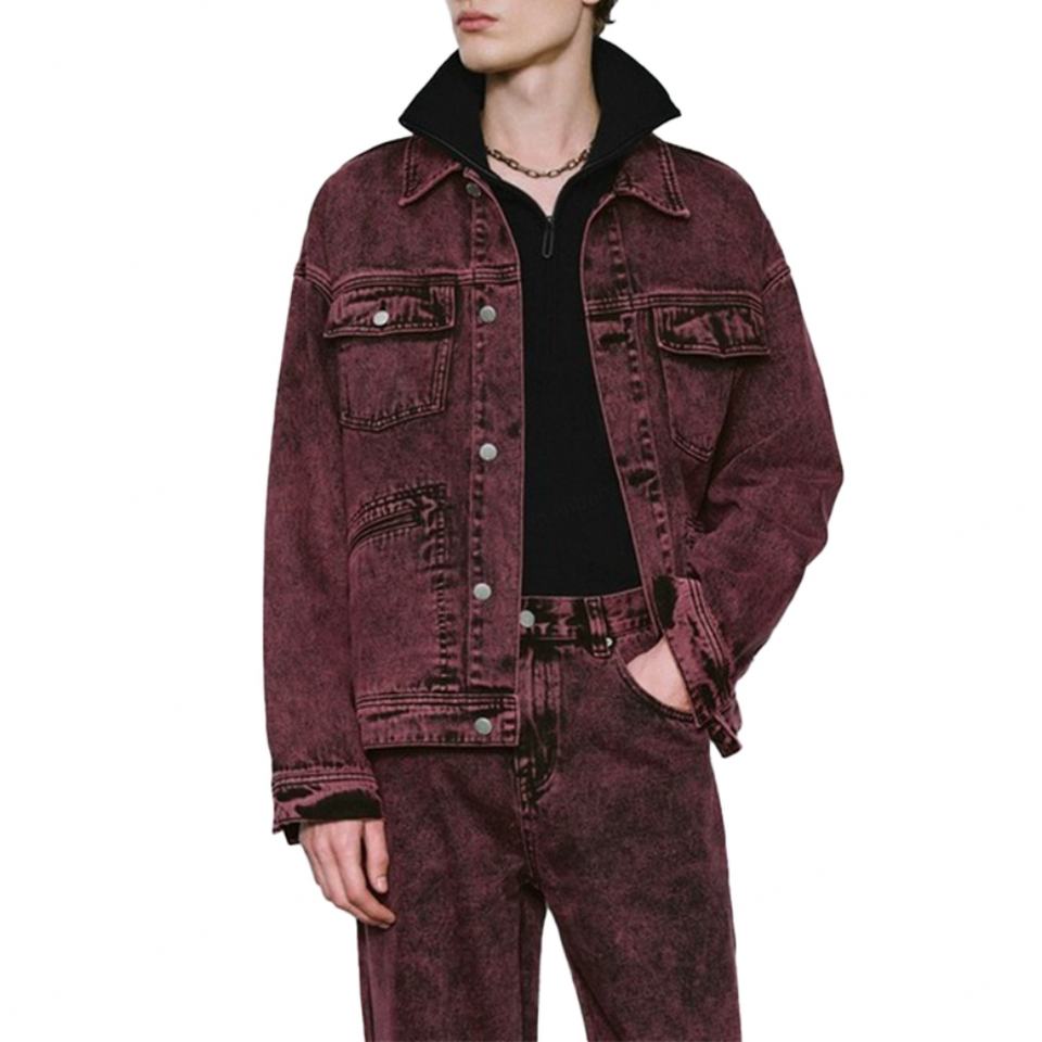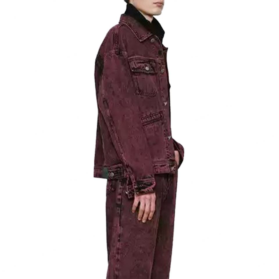 Wholesale Washed Denim Short Coat for Men 100% Cotton High Quality Vintage Red Turn Down Collar Men's Denim Jackets