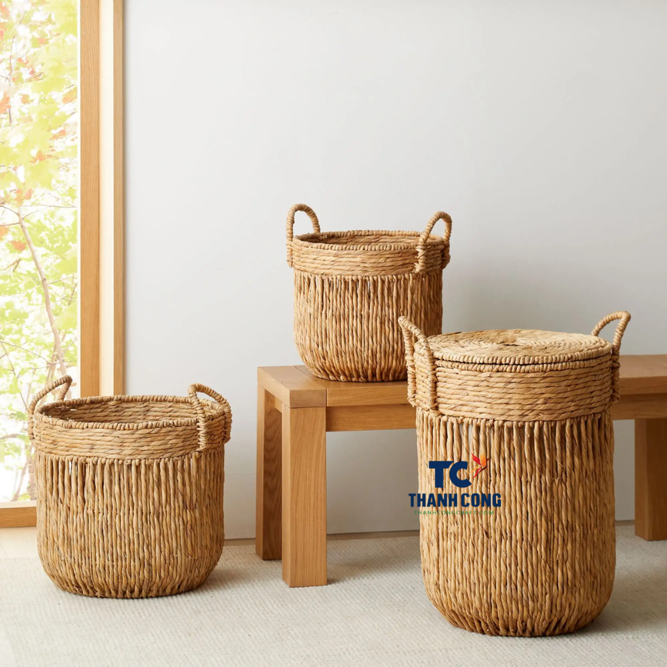 Wholesale Water Hyacinth Woven Eco-Friendly Vintage Storage Basket Durable Handmade Multifunction Laundry Hamper for Clothes