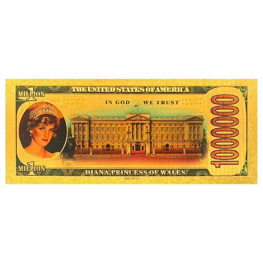 Wholesale Waterproof 20th Anniversary Commemorative British Princess Diana 1000000 Gold-Plated Banknote