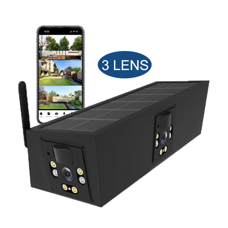 Wholesale Waterproof 4G Network Human Detect Triple Screen Viewing 3 Lens Outdoor Solar Camera CCTV Security System