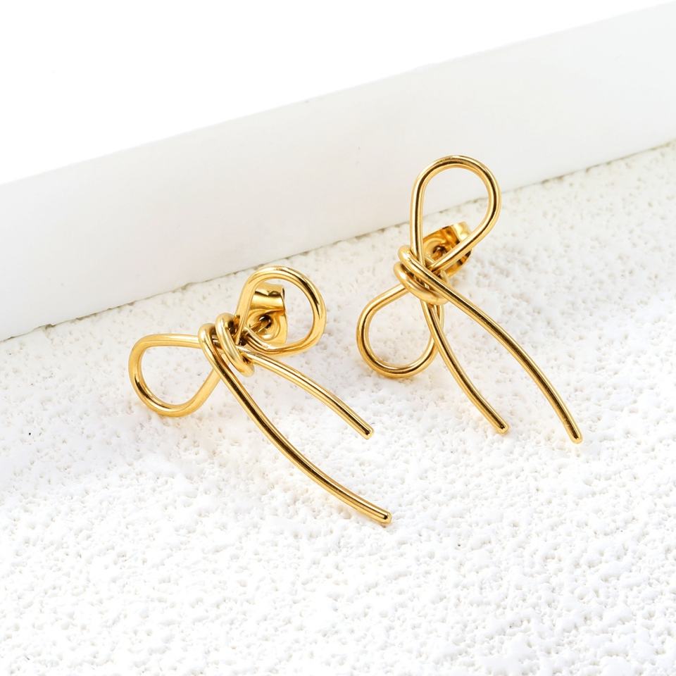 Wholesale Waterproof Non Tarnish Jewelry Bowknot Hoop Earrings 18K Gold Plated Heart Bow Stainless Steel Stud Earrings for Women