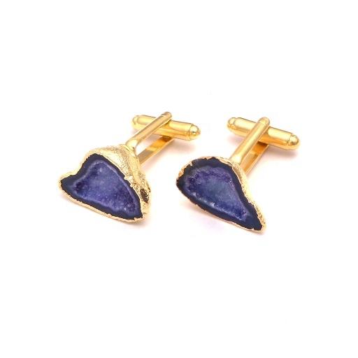 Wholesale Wedding Engagement Green Gold Plated Natural Agate Slice Geode Druzy Gemstone Handmade Cufflinks for Men