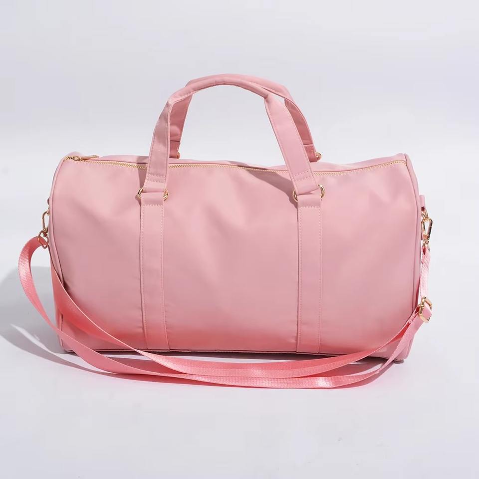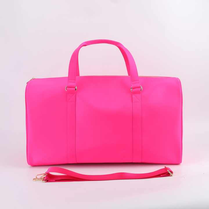 Wholesale Weekender Women With Glittering Letter Patches unisex Hot Pink Large Capacity Fold Sport Gym Travel Garment Duffle Bag