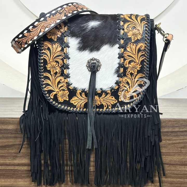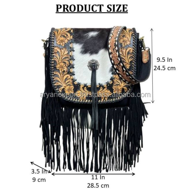 Product name:Hand Tooled Cowhide Leather Fringe Purse