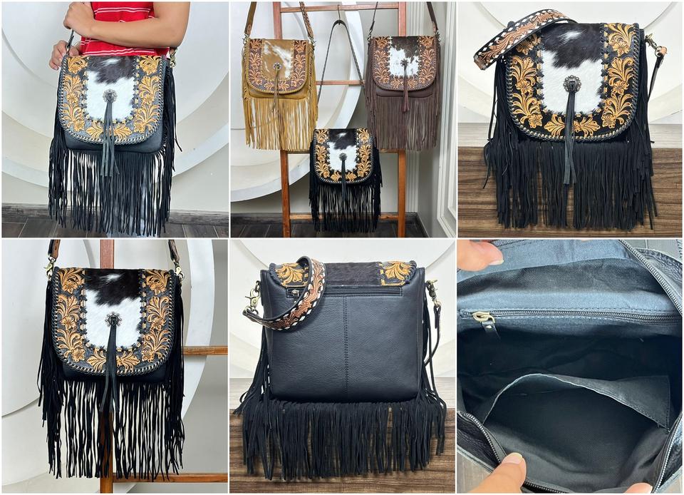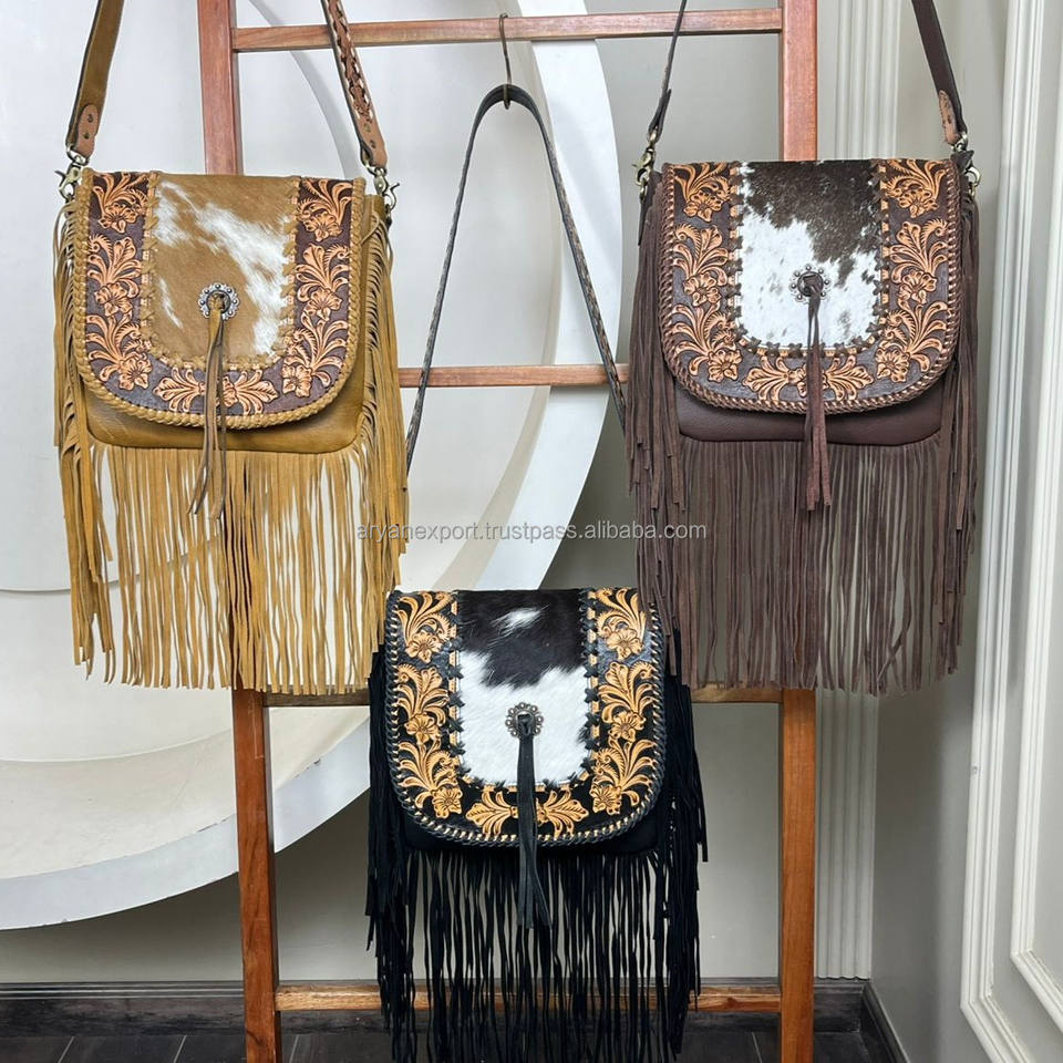 Wholesale Western Bag Hand Tooled Cowhide Leather Fringe Crossbody Handbags Luxury Designer Fashion Cowgirl Large Shoulder Purse