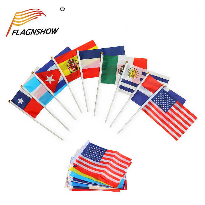 Wholesale White Black Wood Rectangle 25cm/30cm/40cm/60cm Held Pole Portable Digital Printed Mini Hand Waving Flag Stick Flags